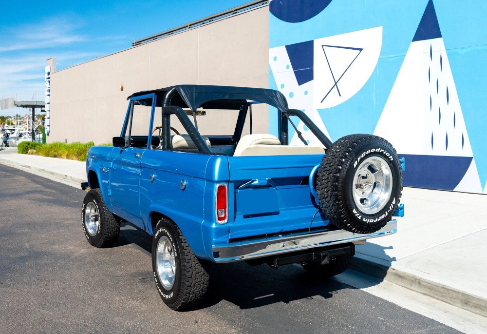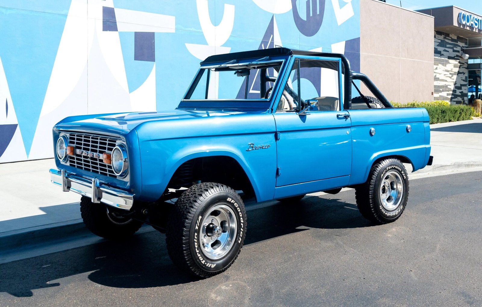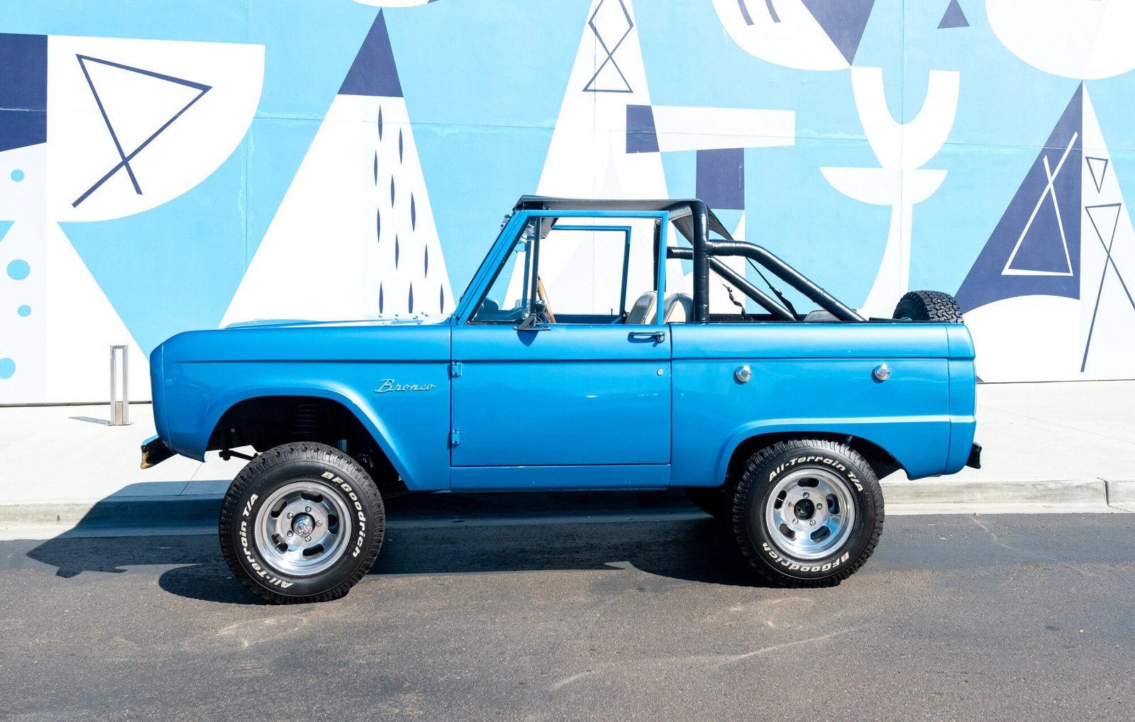 Amenities include a heater, a Hurst floor-mounted shifter, a roll-bar, and a RetroSound stereo with Bluetooth connectivity mated to a Rockford Fosgate stereo components.