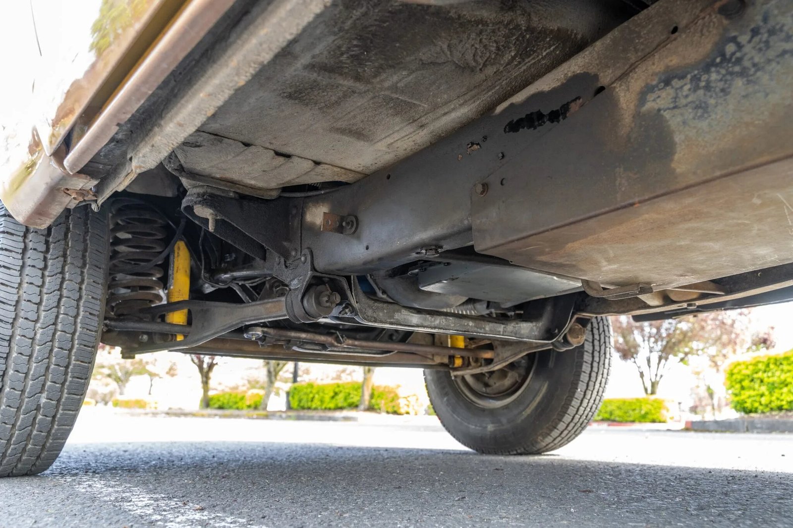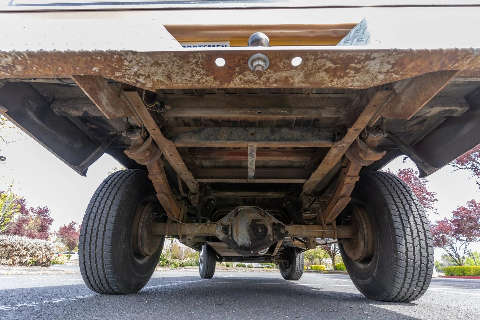 Steel 16″ wheels wear polished covers and 235/85 Trail Steel Radial A/P tires that require replacement.