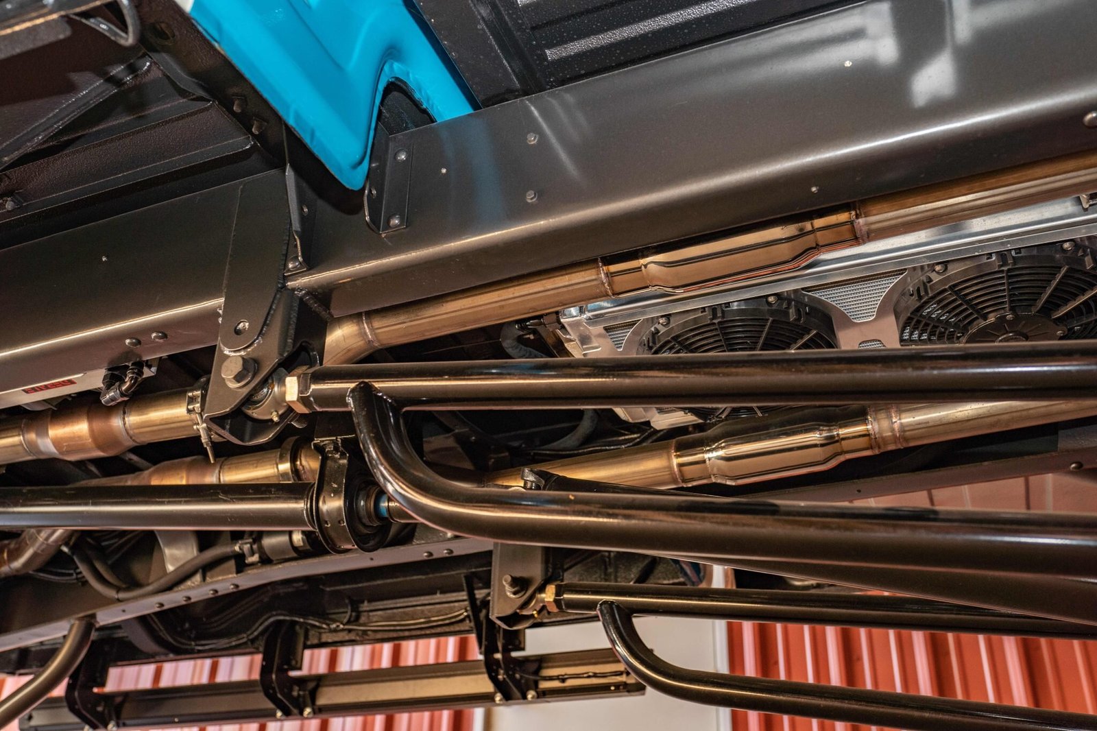 The stainless steel dual exhaust system features high-flow catalytic converters and performance mufflers.