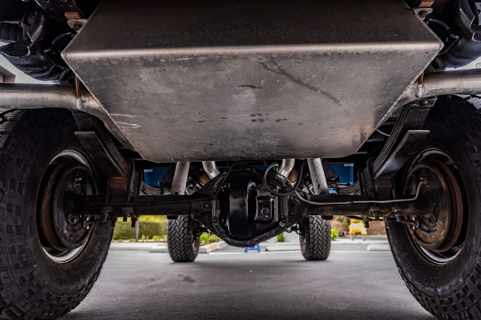 The fuel tank has been relocated beneath the bed behind the rear axle, and additional work consisted of installing an aluminum radiator and replacing the fuel injectors and fuel lines.