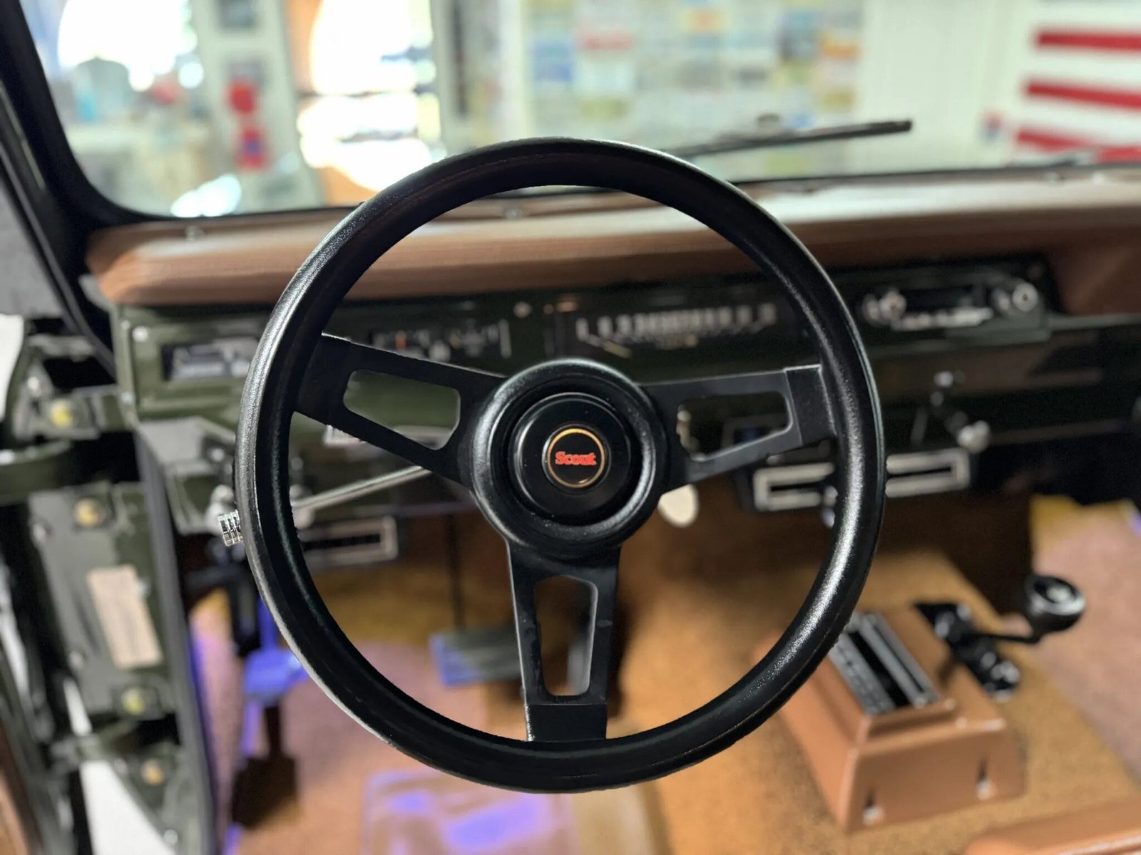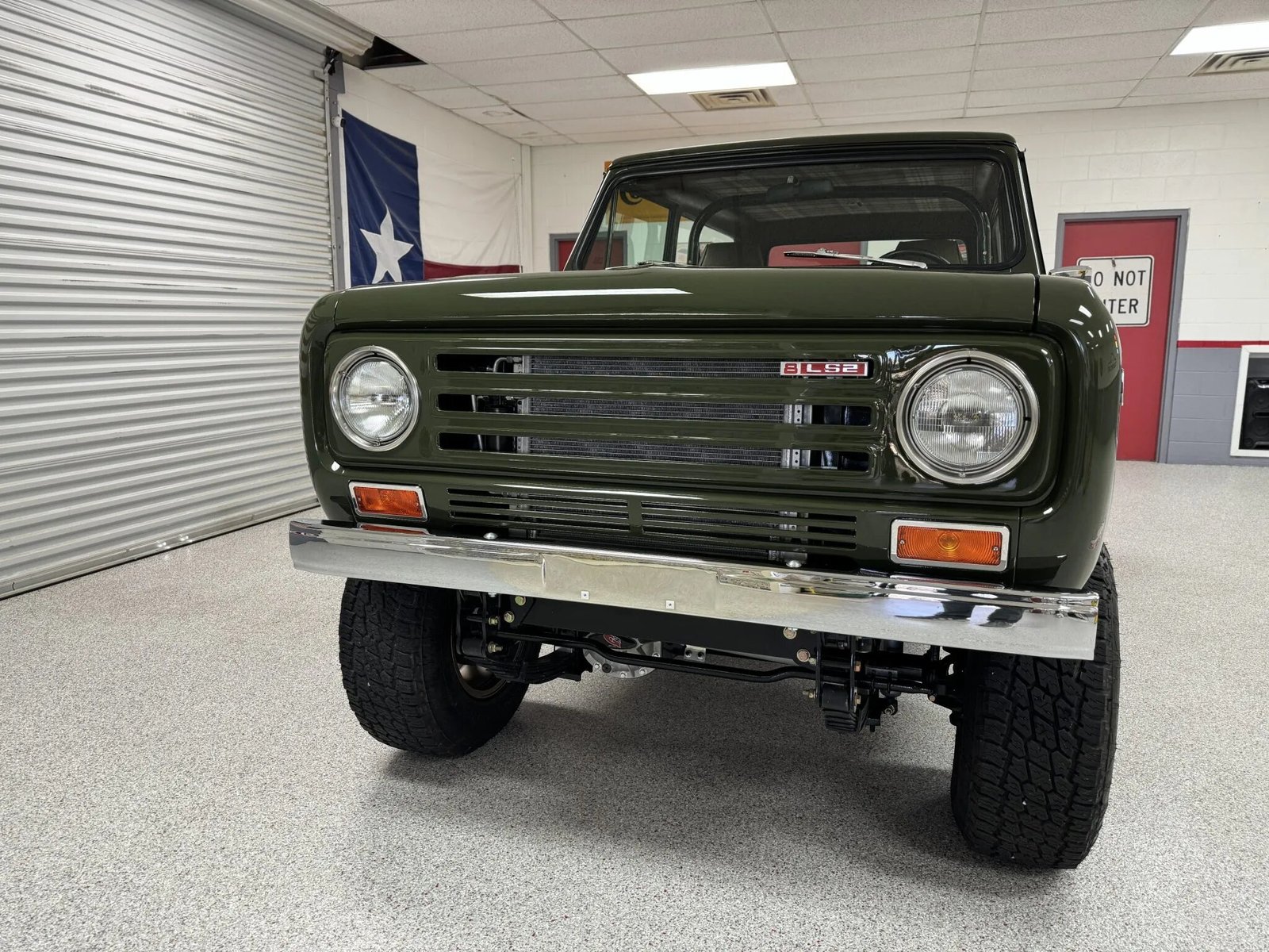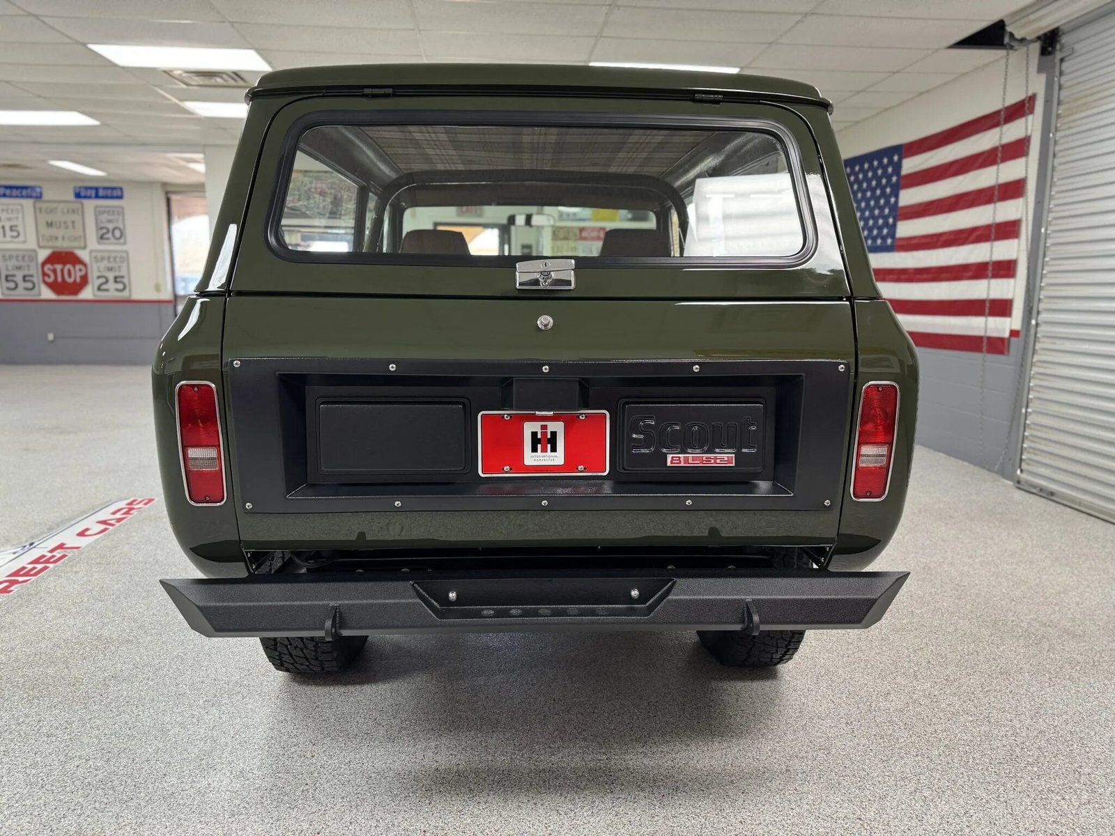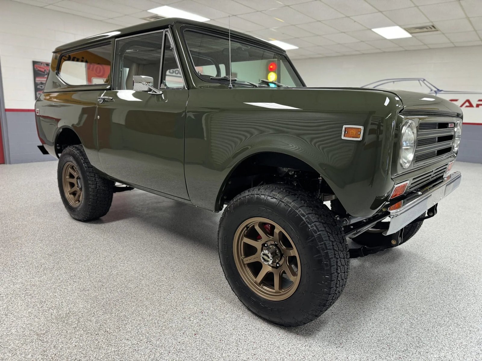 This 1972 International Harvester Scout II was subsequently fitted with a 6.0-liter LS2 V8 and a 4L60E four-speed automatic transmission. The truck was repainted in green, and the interior was refreshed with brown and plaid upholstery. Additional equipment includes 17″ Vision wheels, Warn locking front hubs, four-wheel disc brakes, and suspension and shackle lifts in addition to a removable hardtop, an Old Air Products Hurricane climate control system, a RetroSound head unit, and aftermarket speakers. A Flowmaster muffler, power steering, and a Scouts Unlimited Farmall Deluxe rear bumper are also equipped.