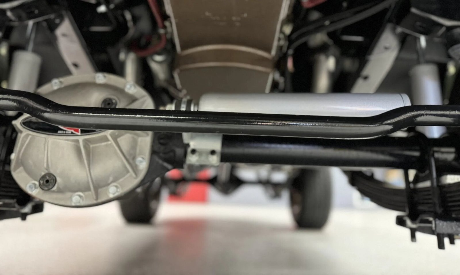 Power is delivered to the rear or all four wheels via a 4L60E four-speed automatic transmission and a Dana dual-range transfer case with a Novak adapter. G2 differential covers are installed. The underside was coated and a replacement fuel tank was installed.