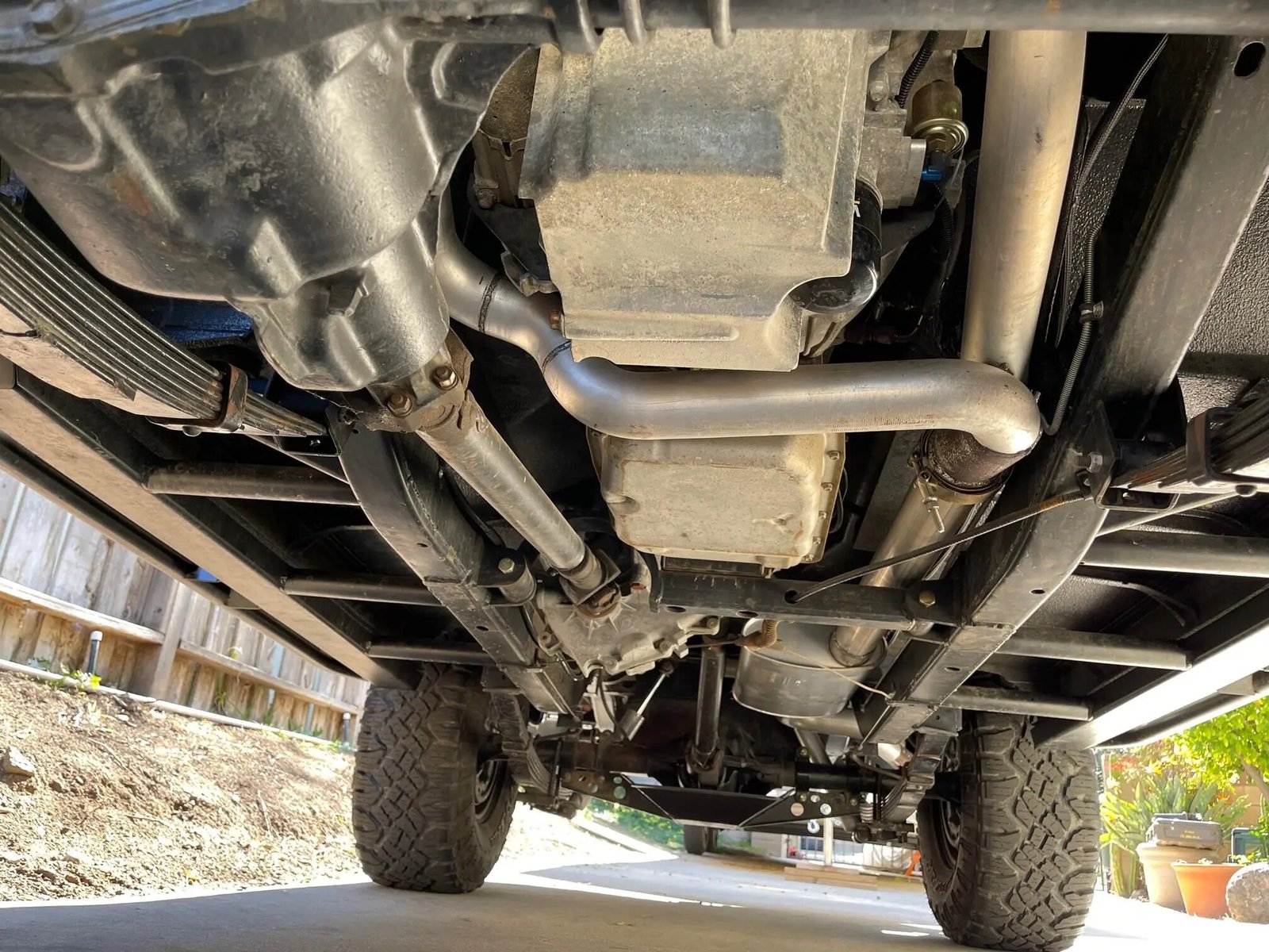 The frame was sandblasted and powder-coated black, the underbody was stripped and refinished, and a 30-gallon fuel tank was added.
