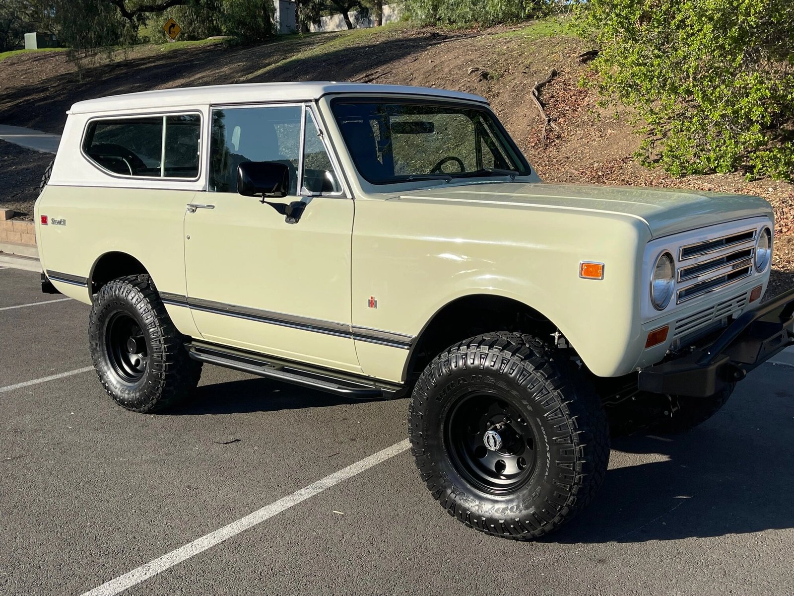 This 1972 International Harvester Scout II is finished in yellow over a black interior and is powered by a retrofitted 5.3-liter Vortec V8 paired with a six-speed automatic transmission and a dual-range transfer case.