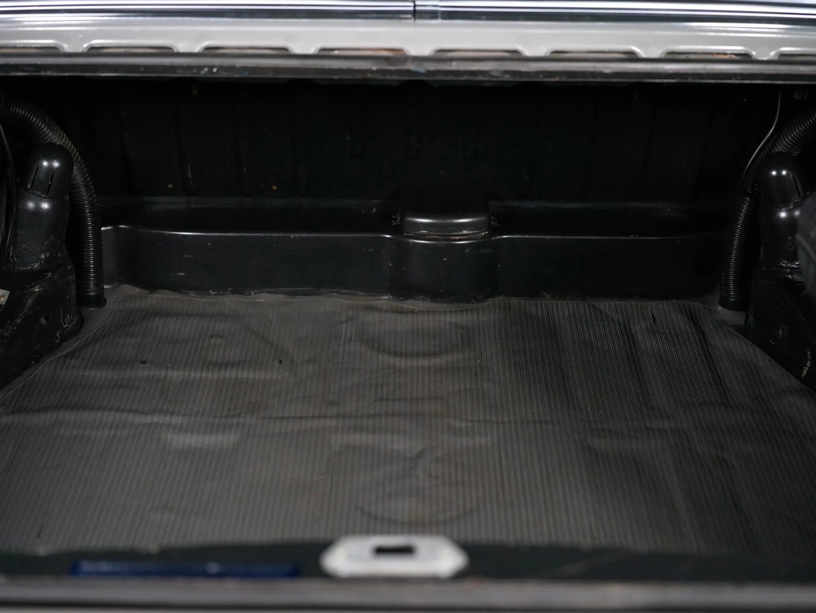 Exterior details include chrome-finished bumpers and trim, stacked quad headlamps, a metal sunroof, a driver-side mirror, a heated glass rear window, and twin exhaust outlets with polished finishers.