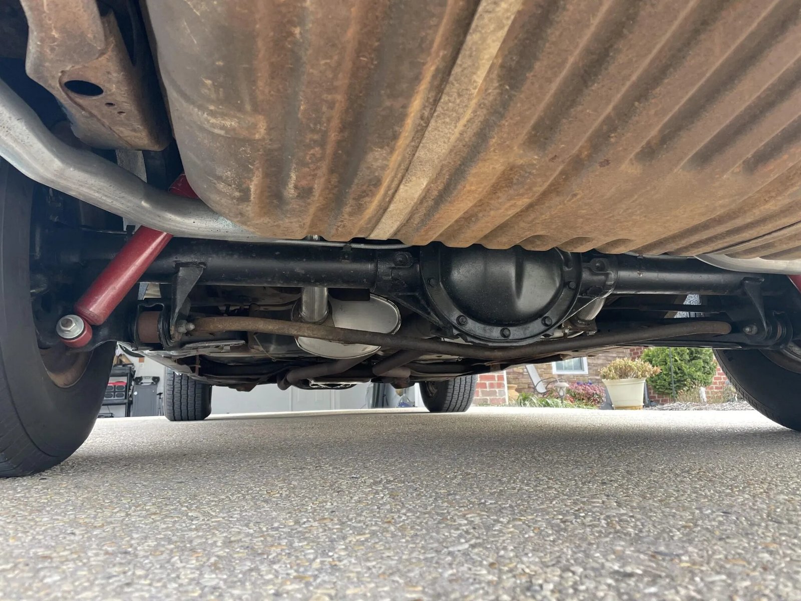Painted 14″ Super Stock III wheels wear polished trim rings as well as BFGoodrich white-letter tires, and a matching spare is stored in the trunk. Braking is provided by power-assisted front discs and rear drums, and the system have been overhauled. The car is equipped with power steering.
