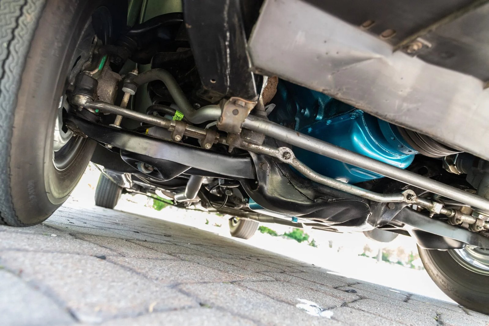 Super Stock I wheels are fitted with 14″ Goodyear white-letter tires and are accompanied by a matching spare located in the trunk.