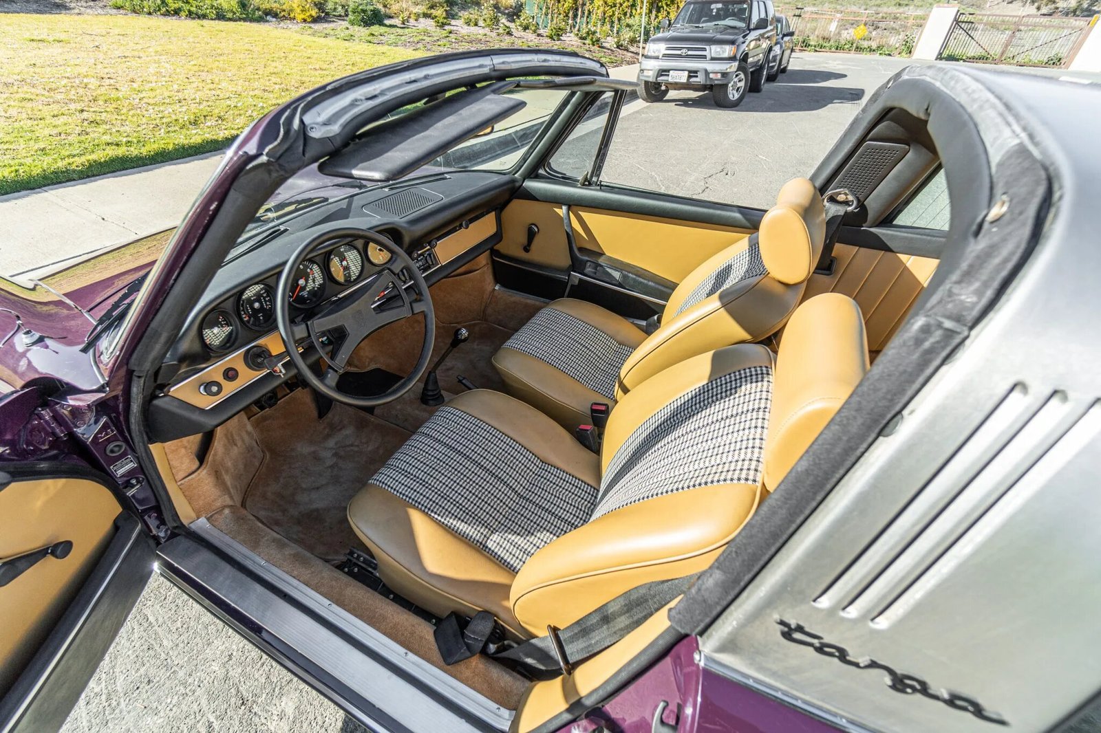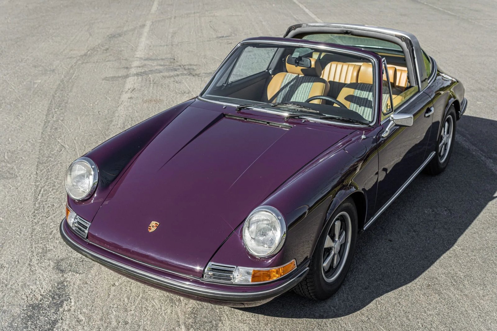 A subsequent refurbishment included a repaint in its factory shade of Auburgine, replacing the tan interior, overhauling the suspension and brakes, and servicing of the numbers-matching 2.4L flat-six and five-speed manual transaxle.
