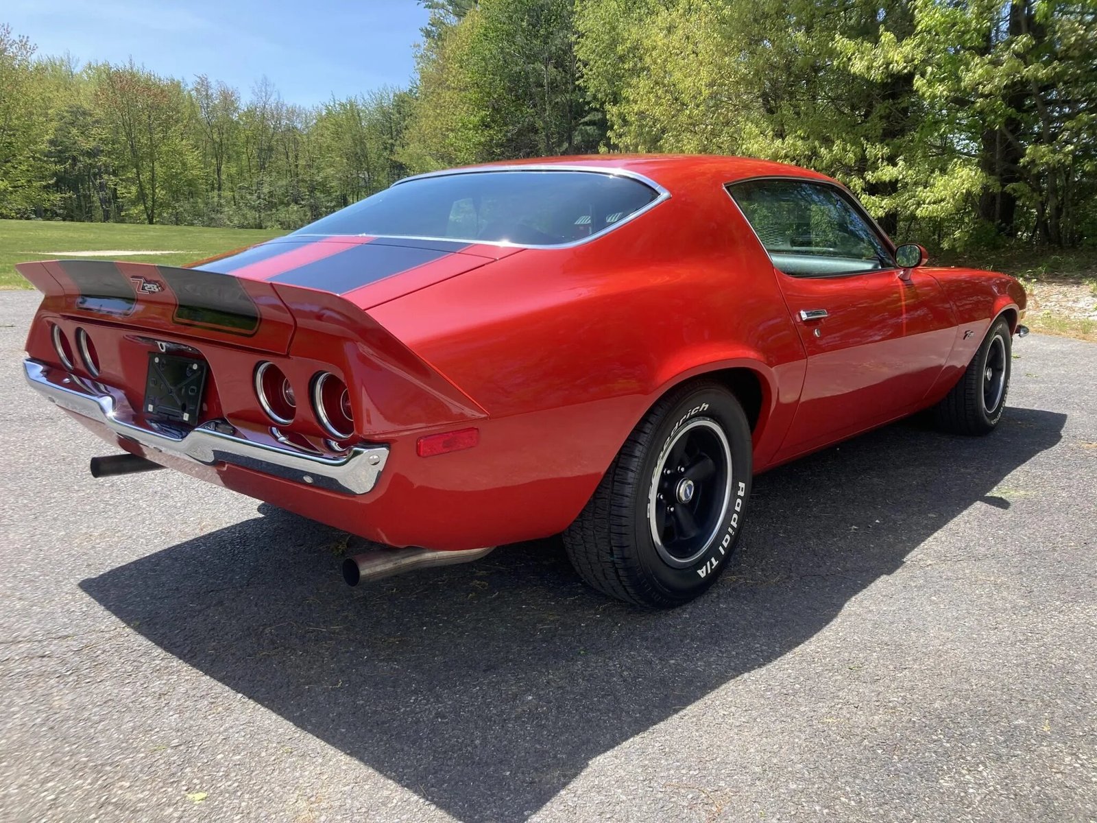 Exterior details include a front and rear spoiler, aftermarket headlights, dual body-color side mirrors, “Z28” badging, and dual exhaust outlets.