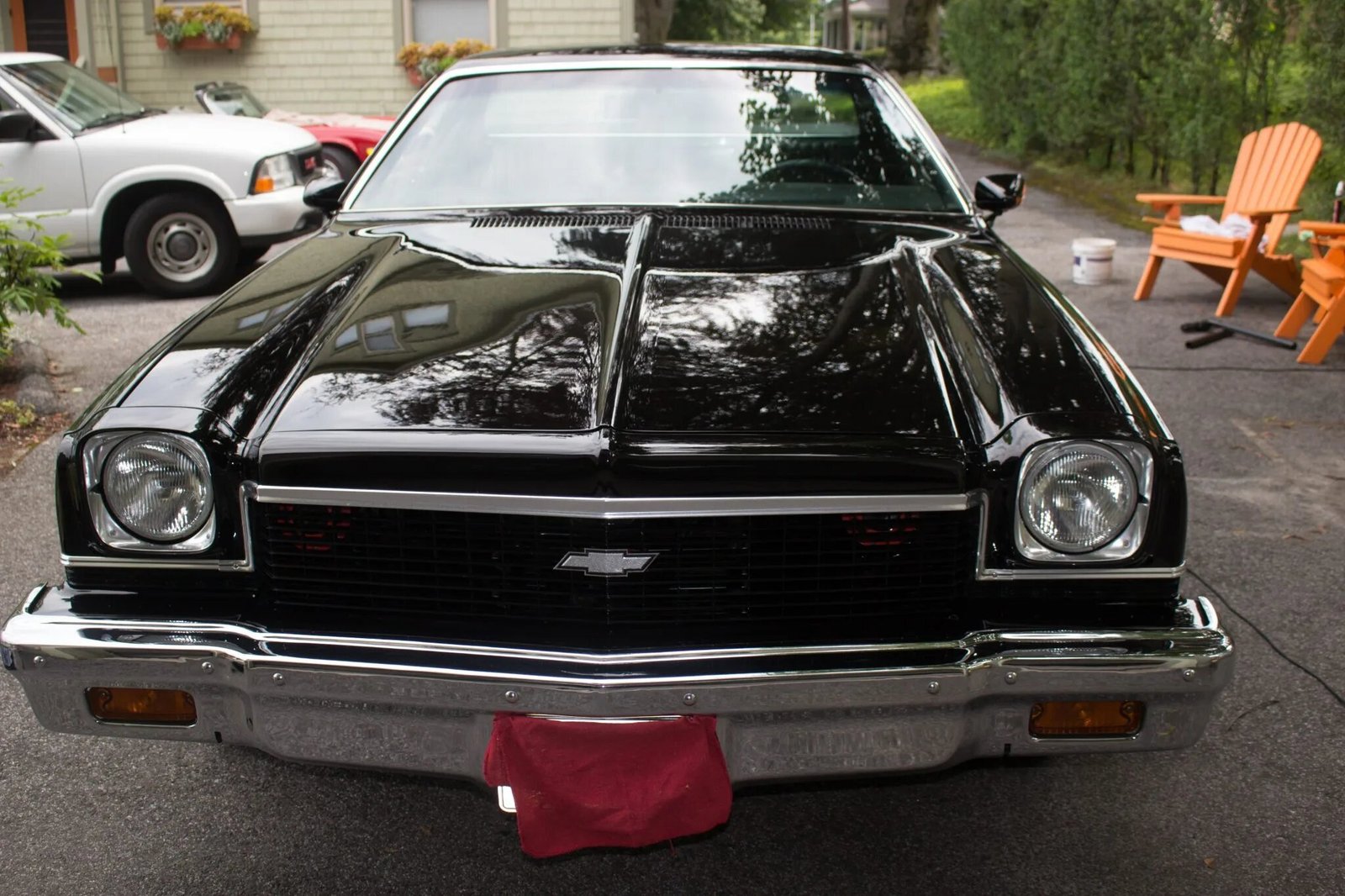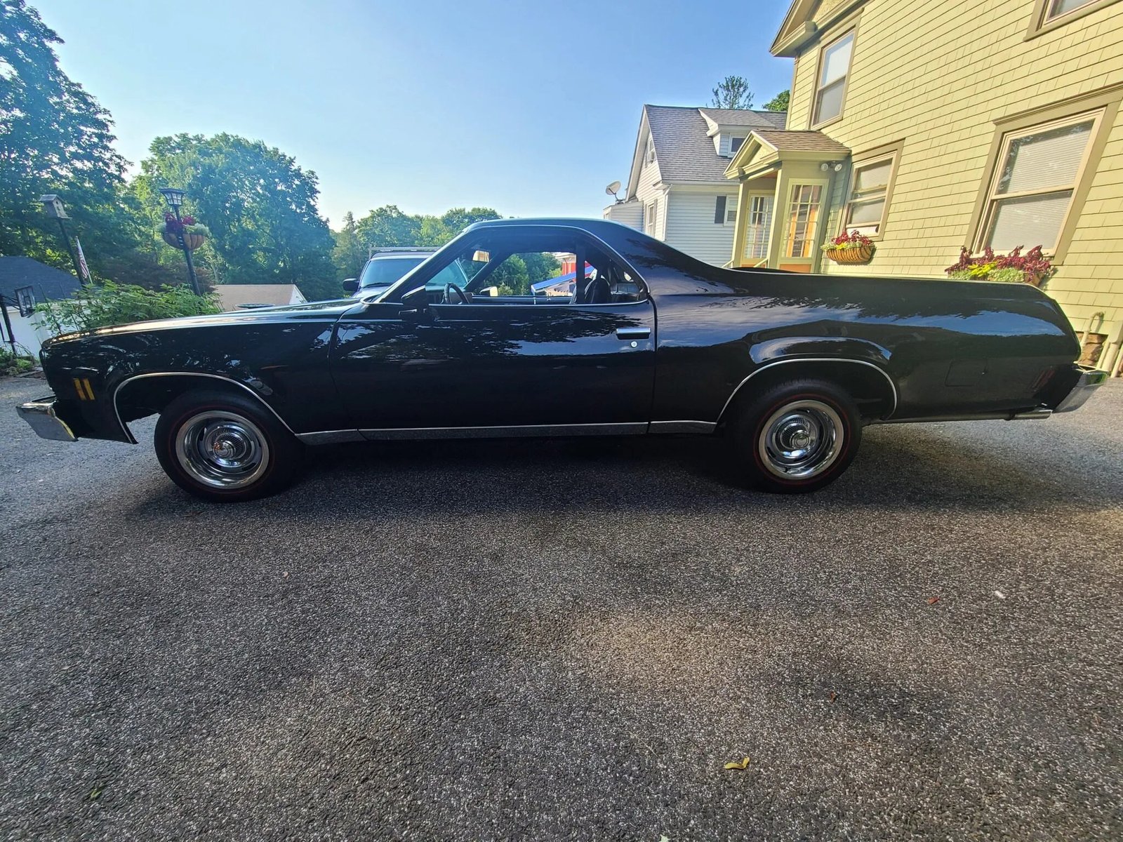 The car is finished in Tuxedo Black over black vinyl and powered by a 5.7-liter Vortec V8 paired with a three-speed automatic transmission and a 3.42:1 rear end.