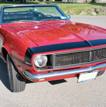 Features include power steering, a Comp Cams camshaft, an Edelbrock four-barrel carburetor, a BeCool aluminum radiator, a dual exhaust system with chambered mufflers, black side stripes, front and rear sway bars, power front disc brakes, and 14″ Rallye wheels.