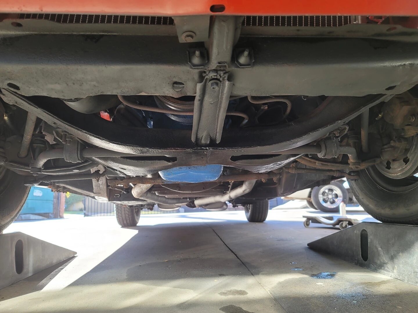 The car is equipped with power steering and front and rear swaybars. Braking is handled by power-assisted front discs and rear drums.