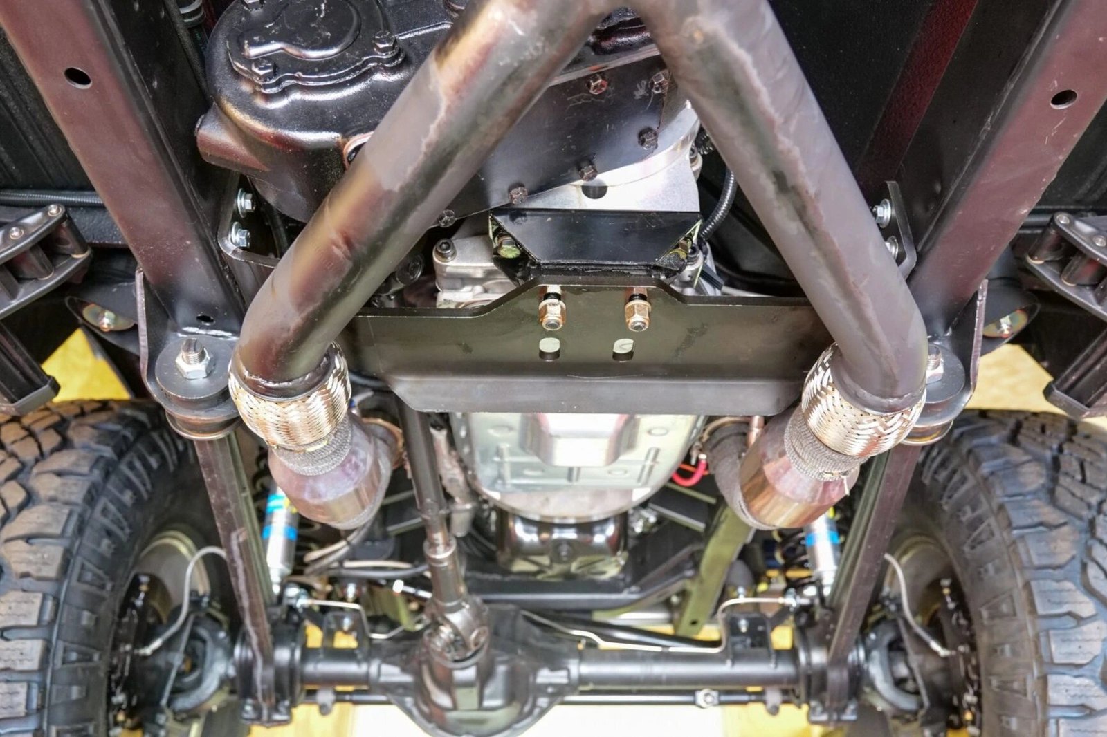 Power is sent to the front, rear, or all four wheels through a Ford 6R80 six-speed automatic transmission with overdrive, a twin-stick Dana 20 two-speed transfer case, custom driveshafts, and Dana axles with ARB locking differentials.