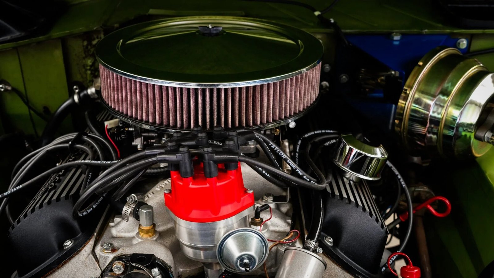 A 351ci Windsor V8 has been installed and is fitted with Edelbrock Performer cylinders heads and a carburetor with an electric choke.