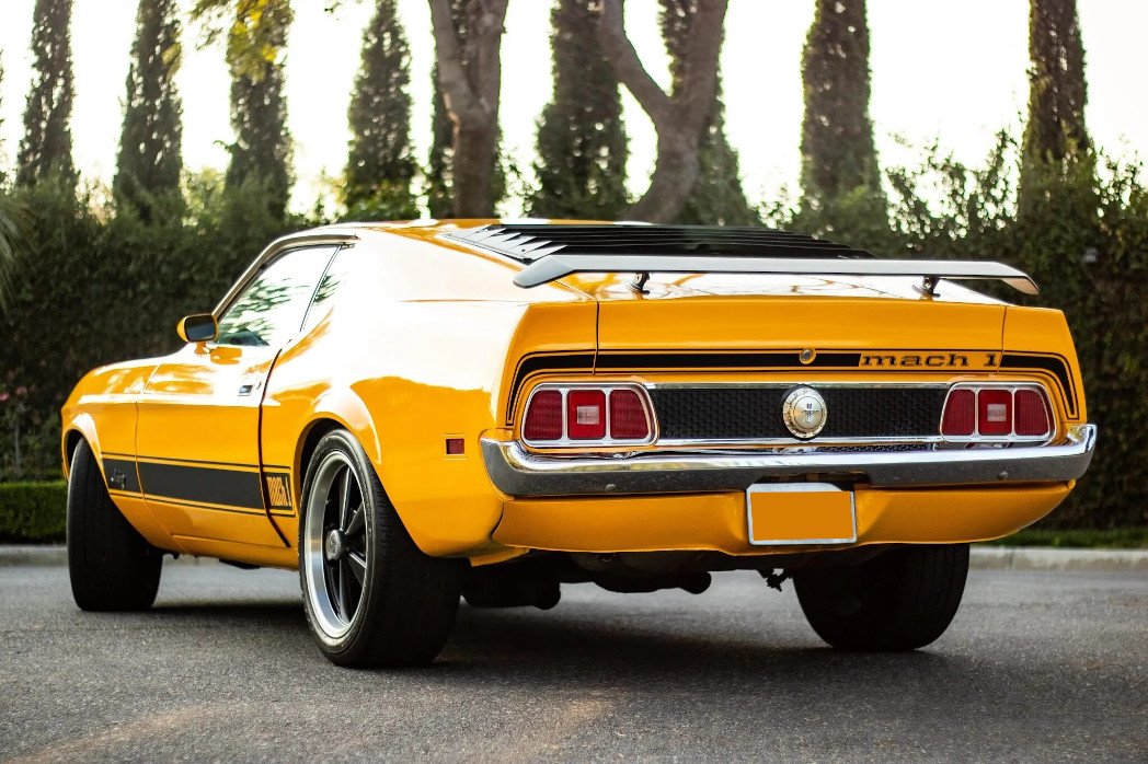Replacement items include the weatherstripping, front lip spoiler, headlight buckets, radiator grille trim, front emblem, Mach 1 decals, and the taillight bezels.