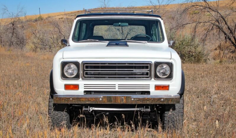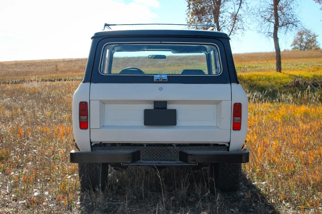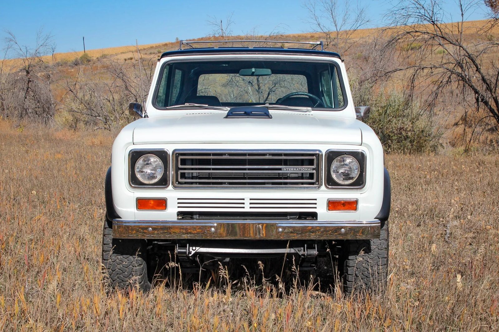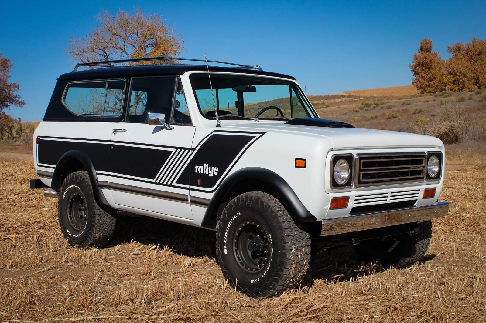 This 1973 International Harvester Scout II is powered by a 345ci V8 mated to a three-speed automatic transmission and a dual-range transfer case. It subsequently underwent refurbishment work that included repairing sheet metal and refinishing the body in matte white with black Rallye graphics over black upholstery. Equipment includes a removable black hardtop, black 15″ steel wheels, power-assisted front disc brakes, 32″ BFGoodrich tires, a FiTech fuel injection system, a dual exhaust system, roof rails, a later-model front grille, a hood scoop, black wheel arch extensions, power steering, and an aftermarket head unit. Additional work have included cleaning and refinishing the underside, installing the fuel injection system and a rebuilt steering gear, flushing fluids, and replacing the dampers and rear axle bearings and seals.