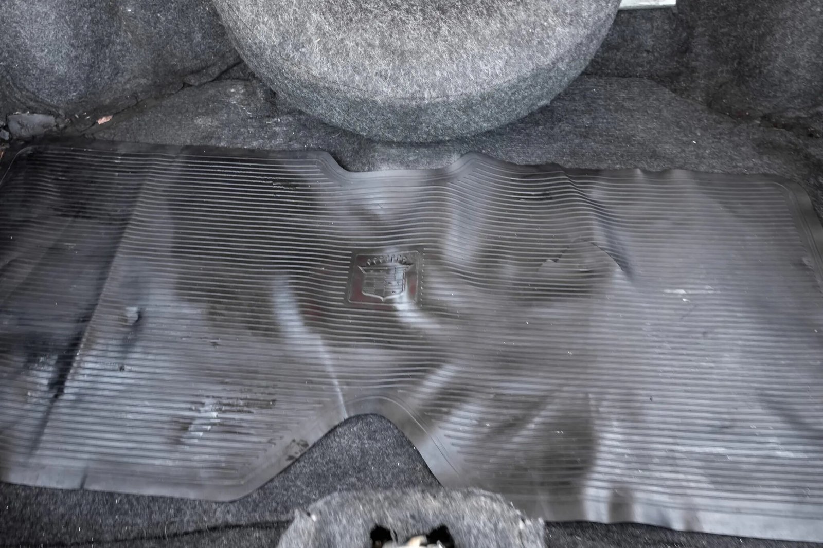 Steel 15″ wheels wear covers with Cadillac crests and 235/75 GT Radial Champiro 75 whitewall tires that were mounted in 2025.