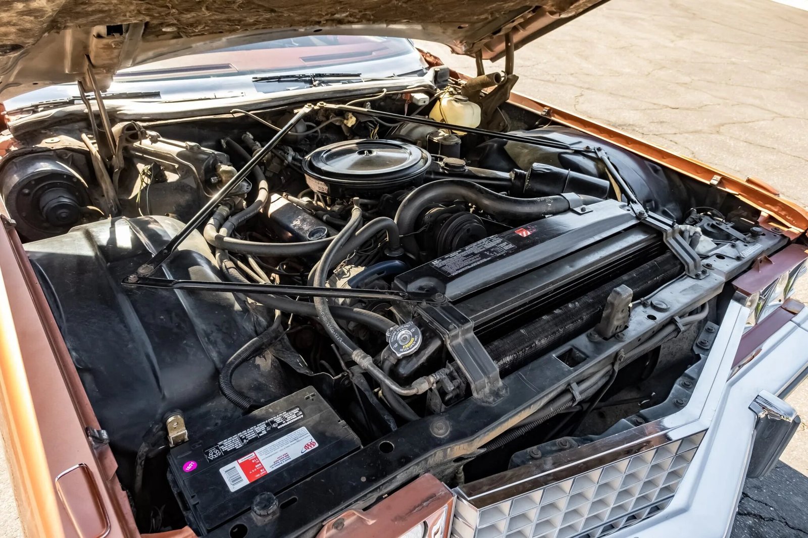 The car is finished in a repaint of Andes Copper over Terra Cotta Maharaja upholstery and is powered by a 472ci V8 paired with a three-speed automatic transmission.