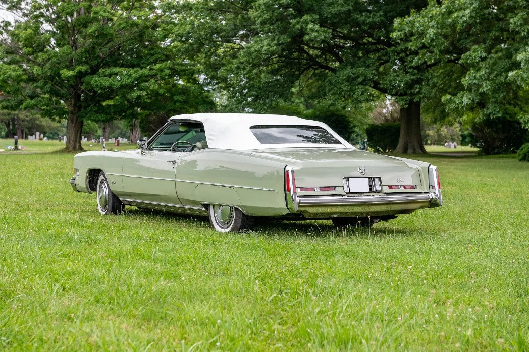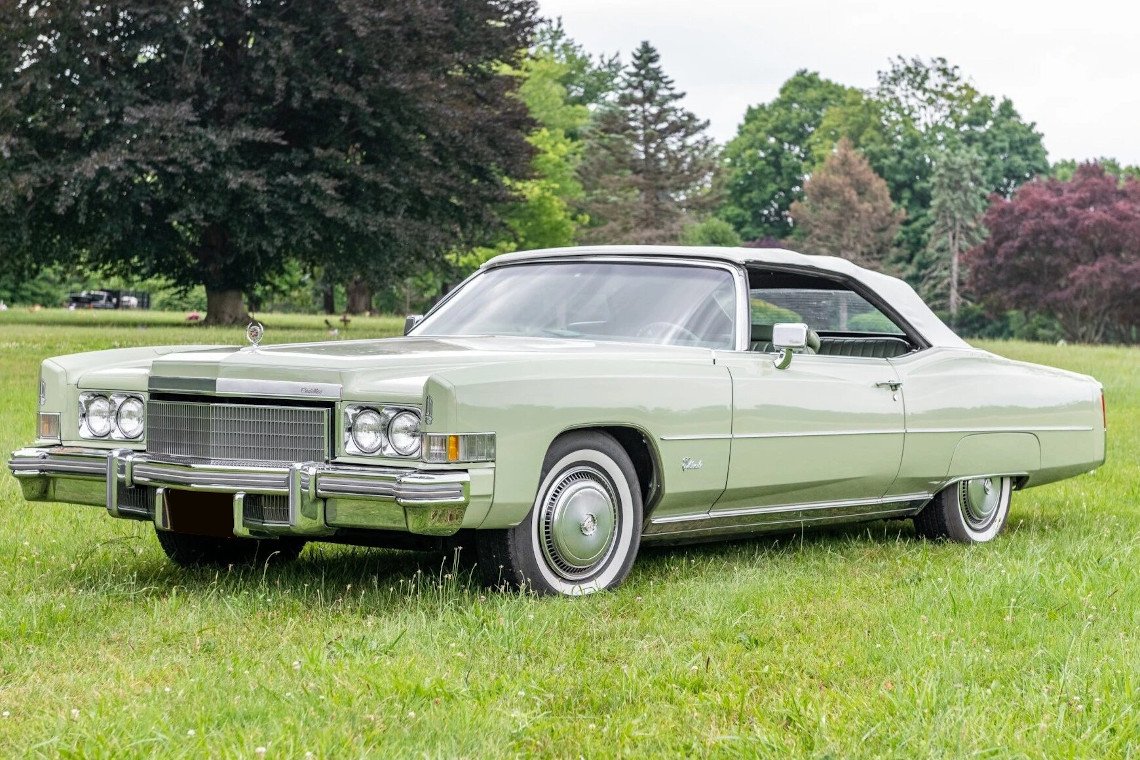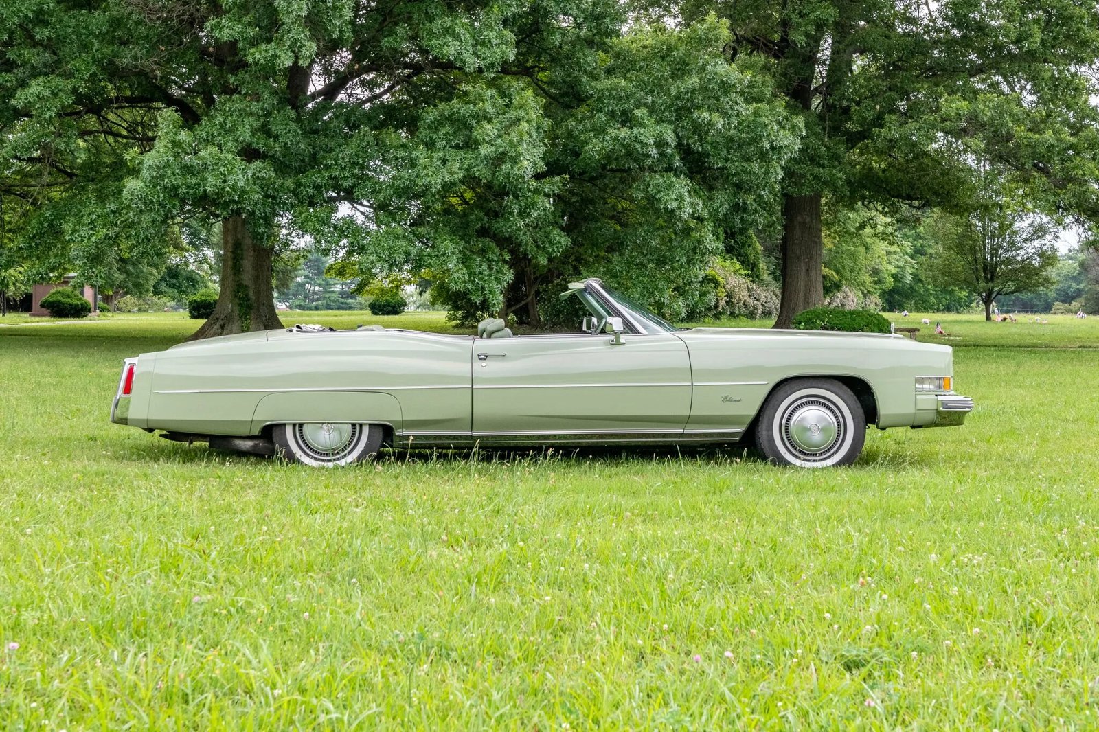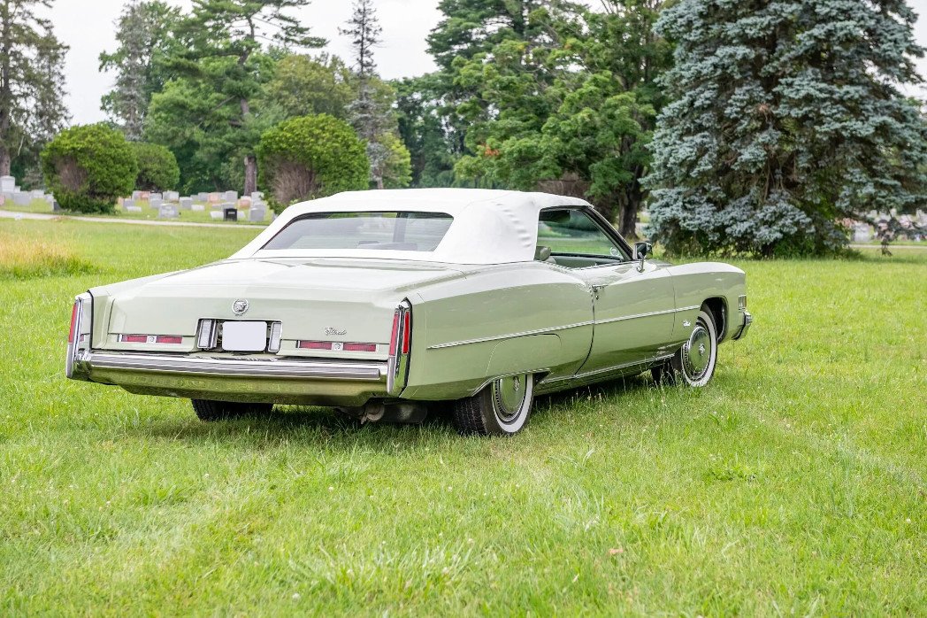 This 1974 Cadillac Eldorado convertible is finished in green over matching leather upholstery and is powered by a 500ci V8 mated to a three-speed automatic transaxle.