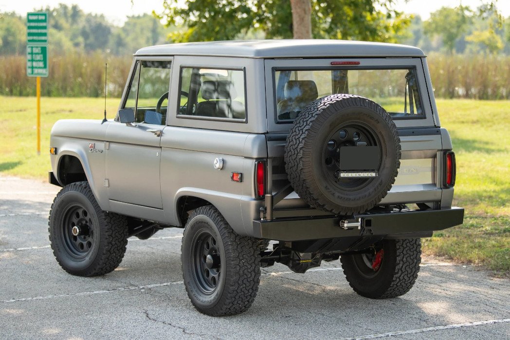This ICON New School BR was completed in 2015 and refreshed by ICON in February 2019. Based on a 1974 Ford Bronco, the initial build of BR #20 included installation of an Art Morrison chassis, a Ford 5.0L Coyote V8, Ford AOD four-speed automatic transmission, and an Atlas II twin-stick transfer case. Finished in matte Stone Grey over a black bison leather interior, the truck is also equipped with Dana axles, ARB locking differentials, a Warn winch, Fox Racing shocks, Brembo brakes, Vintage Air climate control, heated front seats, and a Pioneer stereo and navigation system.