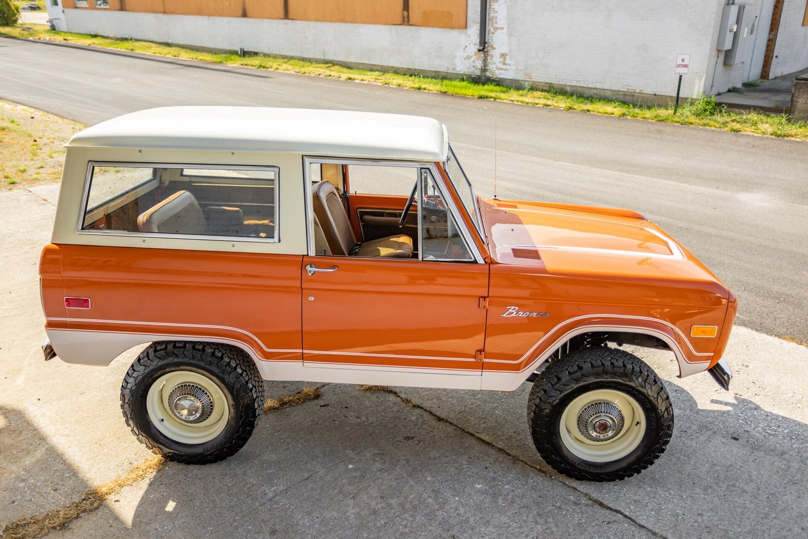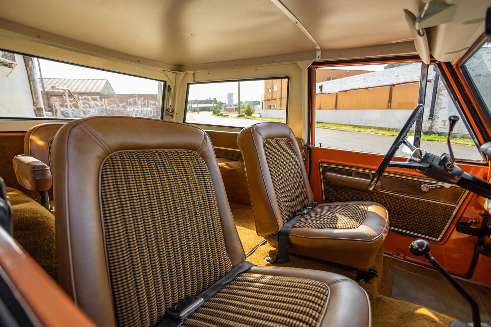 The truck was finished from the factory in Burnt Orange and was refinished in its current shade of orange during the refurbishment.