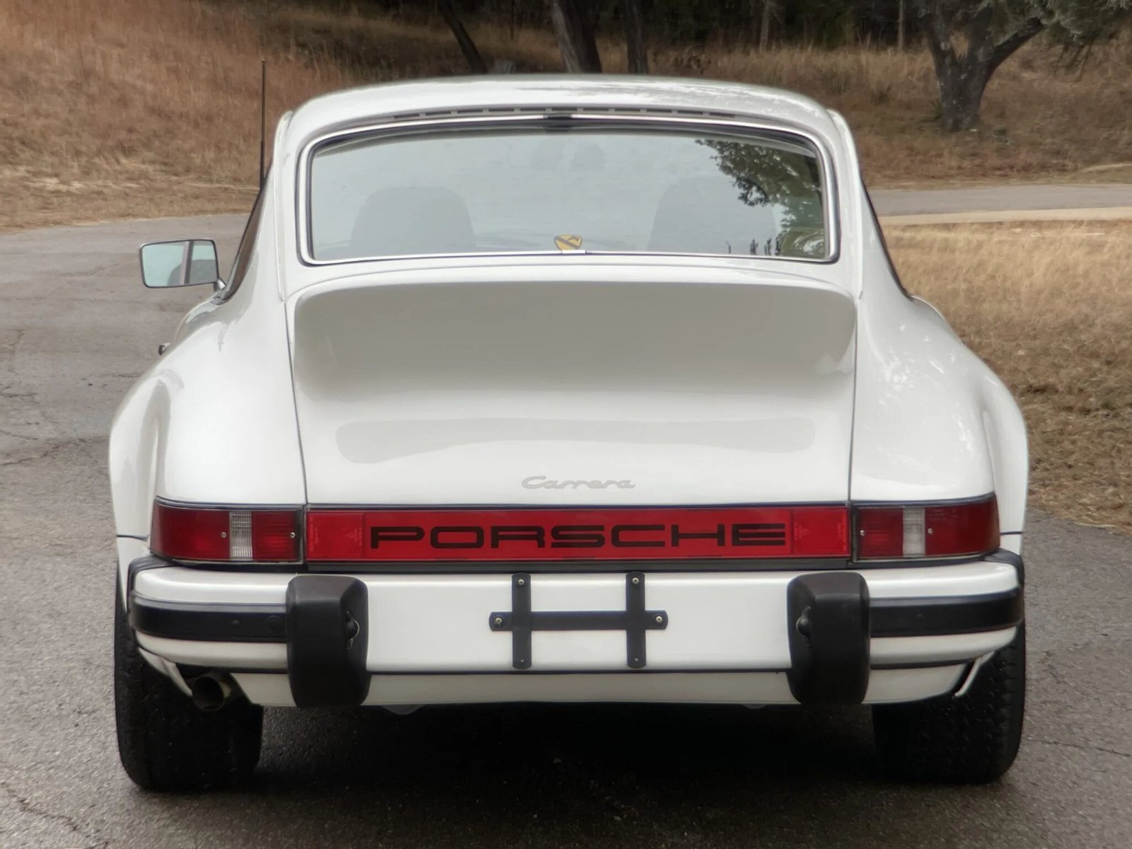 Features include gold Carrera scripts, sugar-scoop headlights, driving lamps, a driver-side mirror, flared rear fenders, a ducktail spoiler, and impact bumpers.