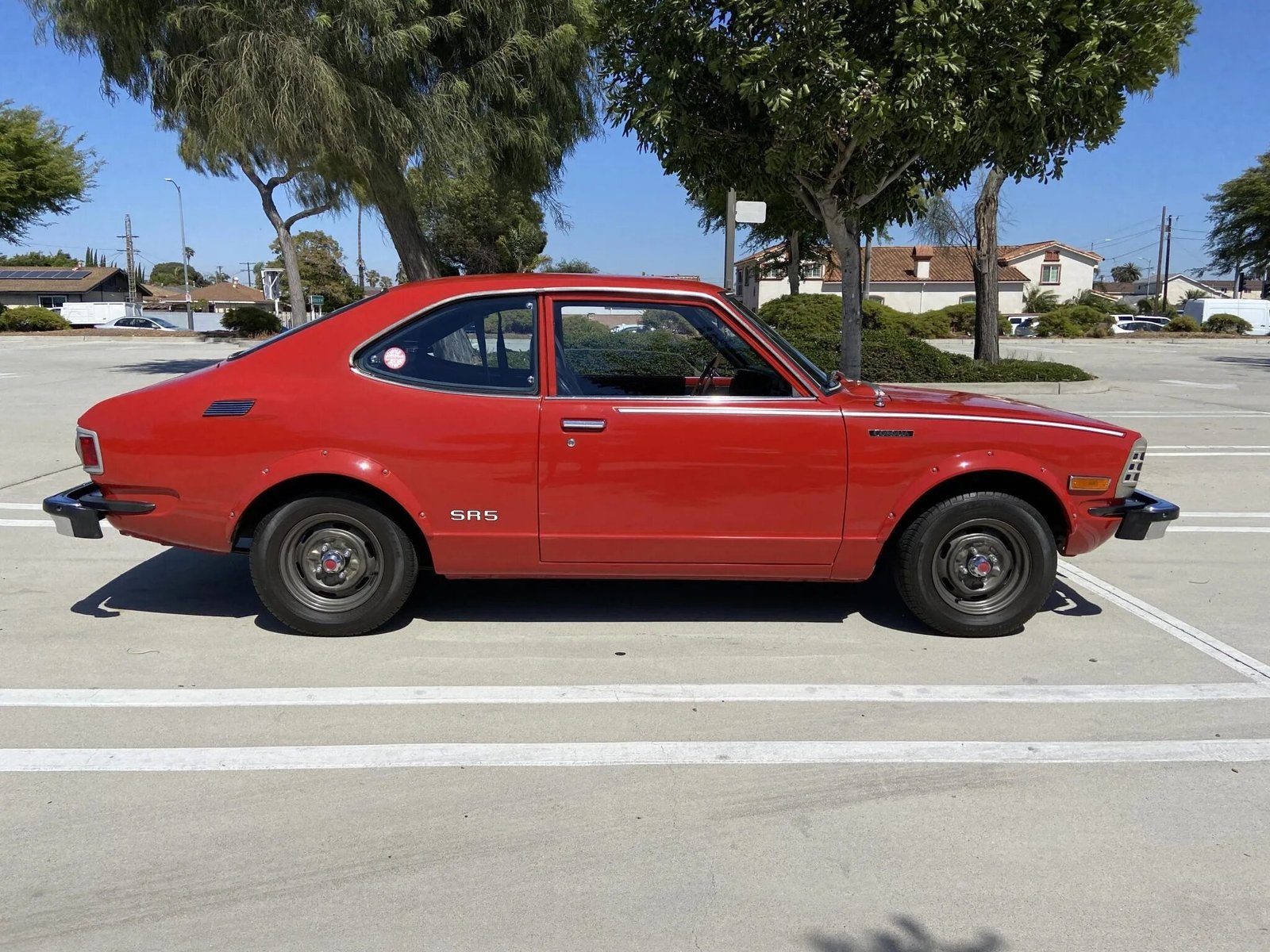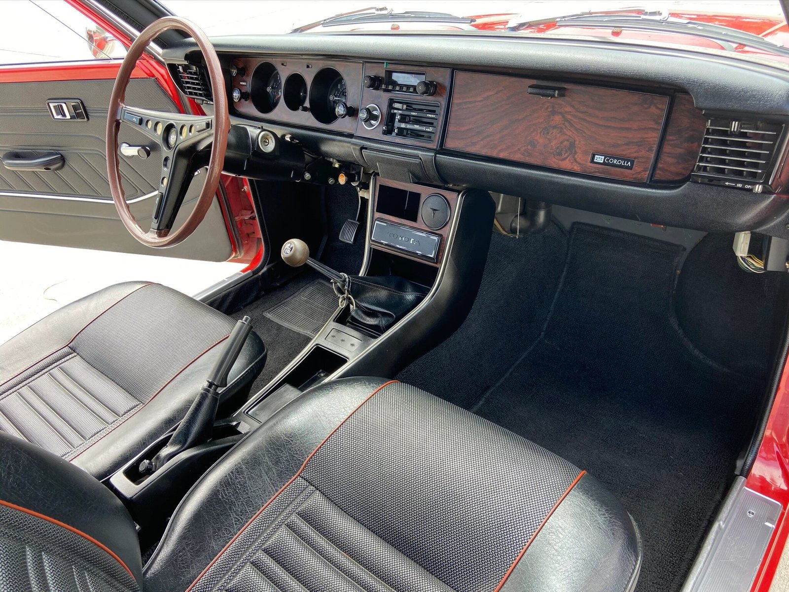 This 1974 Toyota Corolla SR-5 two-door coupe is finished in Toyota Red over black vinyl and powered by a 1.6-liter inline-four paired with a five-speed manual transmission. Additional equipment includes 13″ steel wheels, body-color wheel arch flares, a front sway bar, a full-length center console, an AM radio, and an electric rear window defroster. A tune-up and oil change were performed in preparation for sale.
