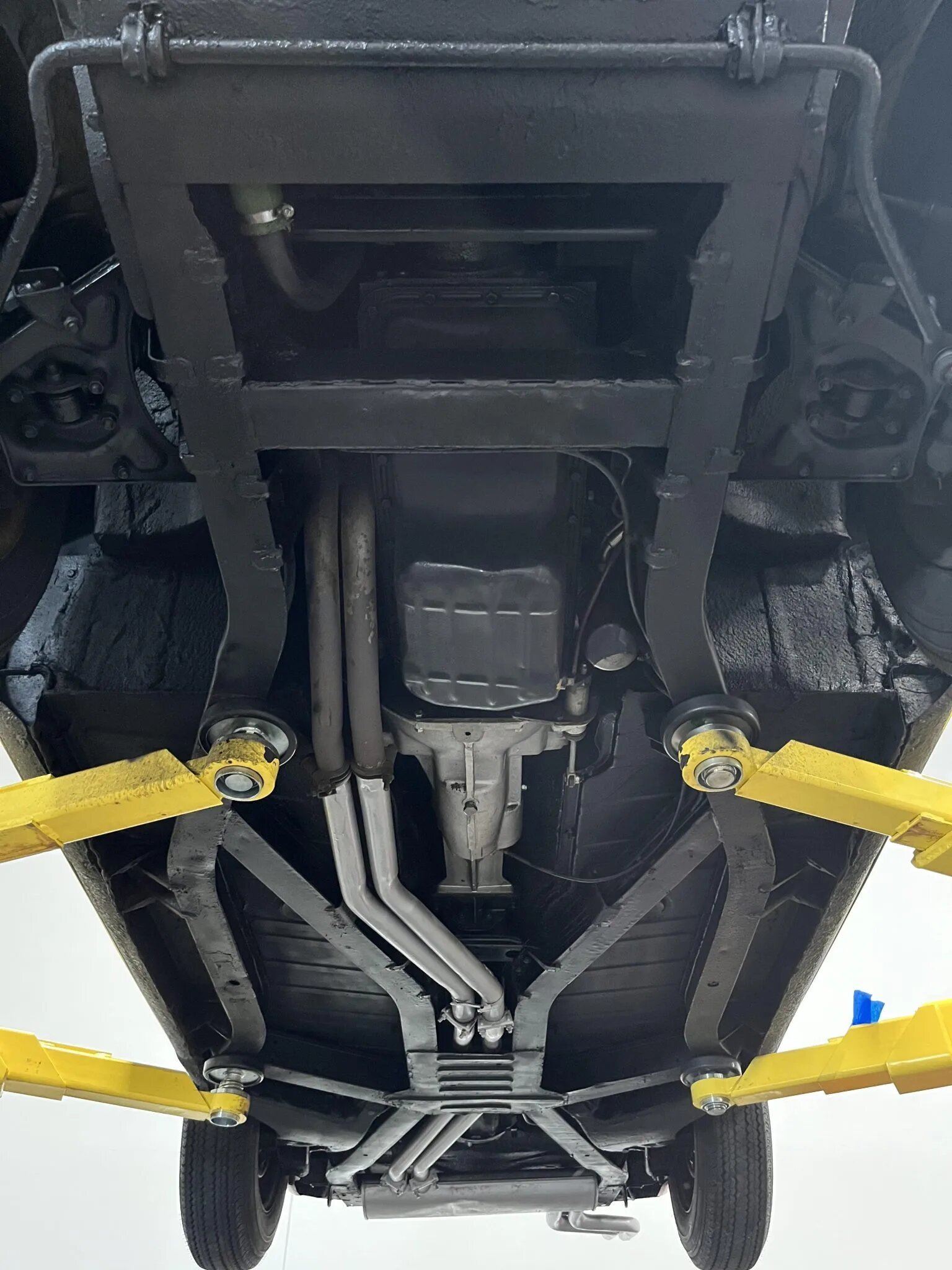 The 185-series Coker Classic redline tires were mounted in preparation for sale, and a spare Michelin tire is mounted in the trunk.
