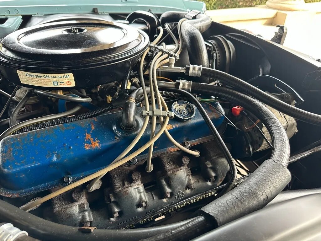 The 500ci V8 features a Rochester Quadrajet four-barrel carburetor and was factory rated at 210 horsepower and 380 lb-ft of torque. Work in preparation for sale consisted of replacing the battery and performing an oil change.
