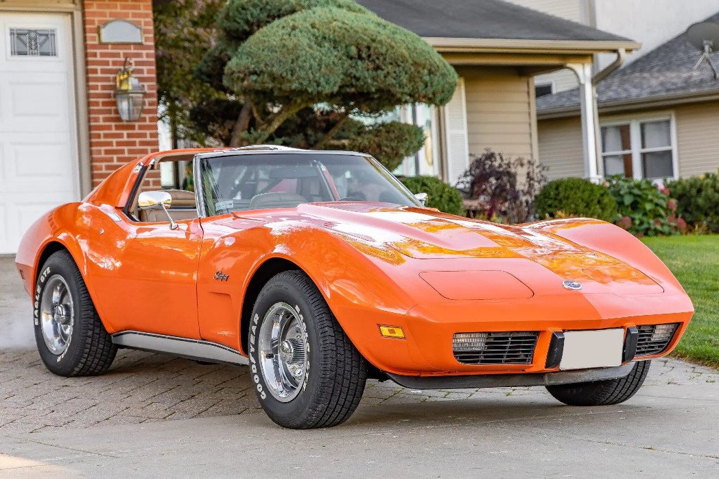 This 1975 Chevrolet Corvette coupe is powered by a stroker 383ci V8 paired with a three-speed automatic transmission.
