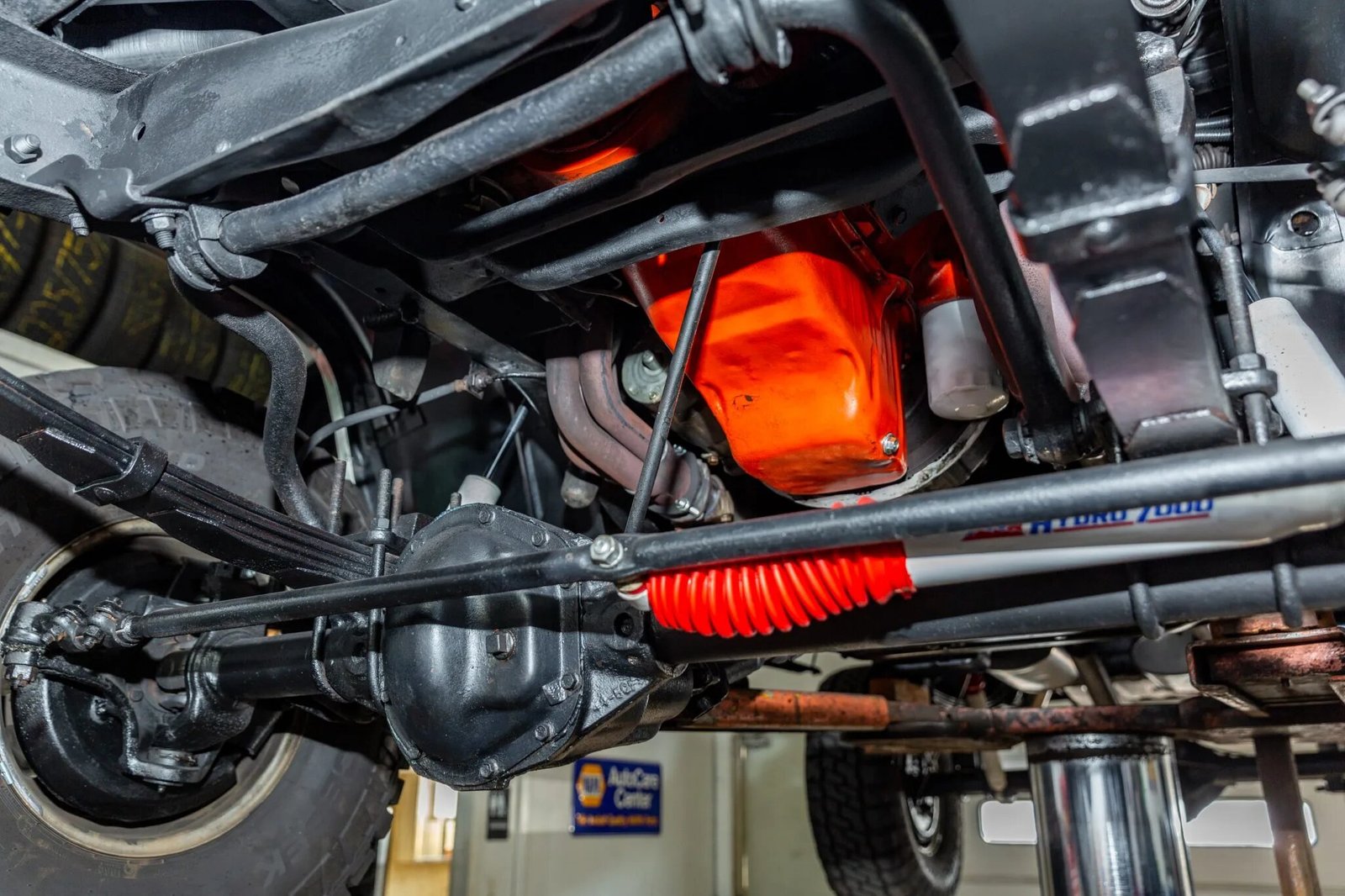 The suspension has been modified with a 4″ lift kit that features rear Rancho shocks, front Gabriel Ultra shocks, and a Skyjacker steering stabilizer.