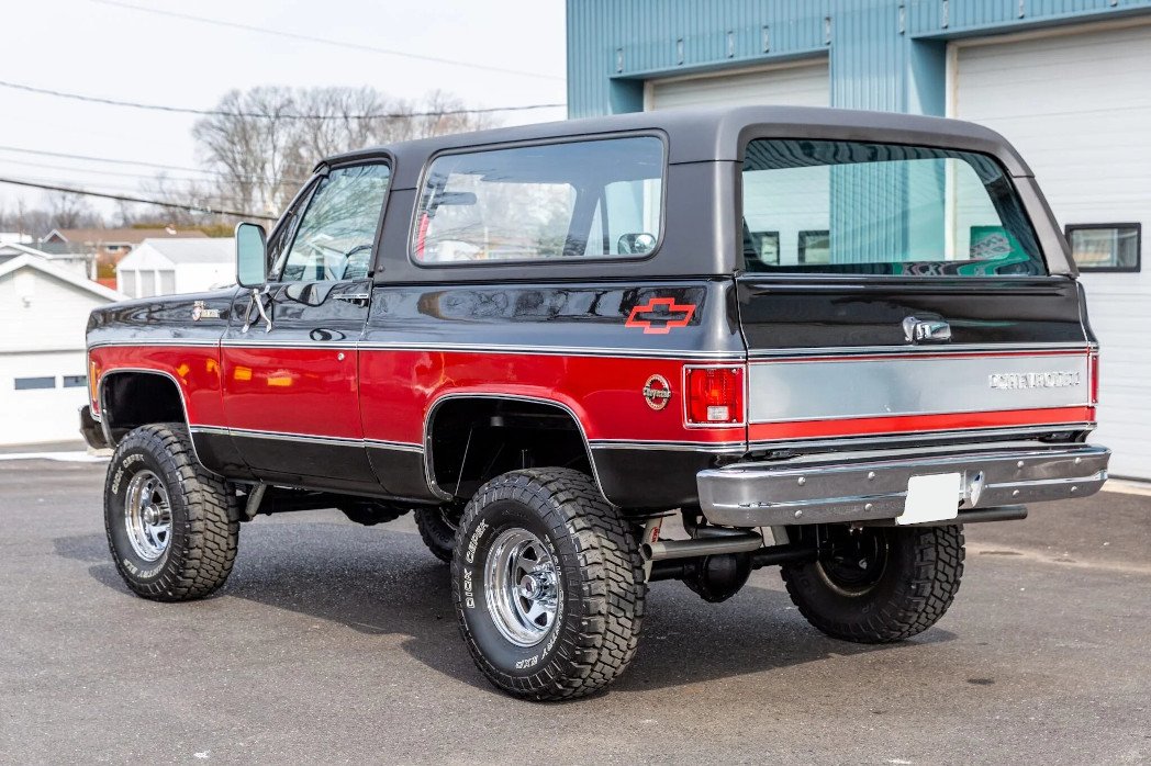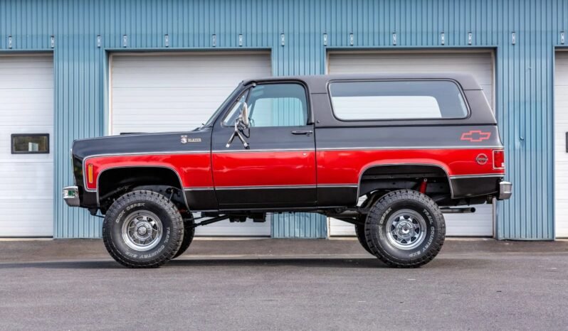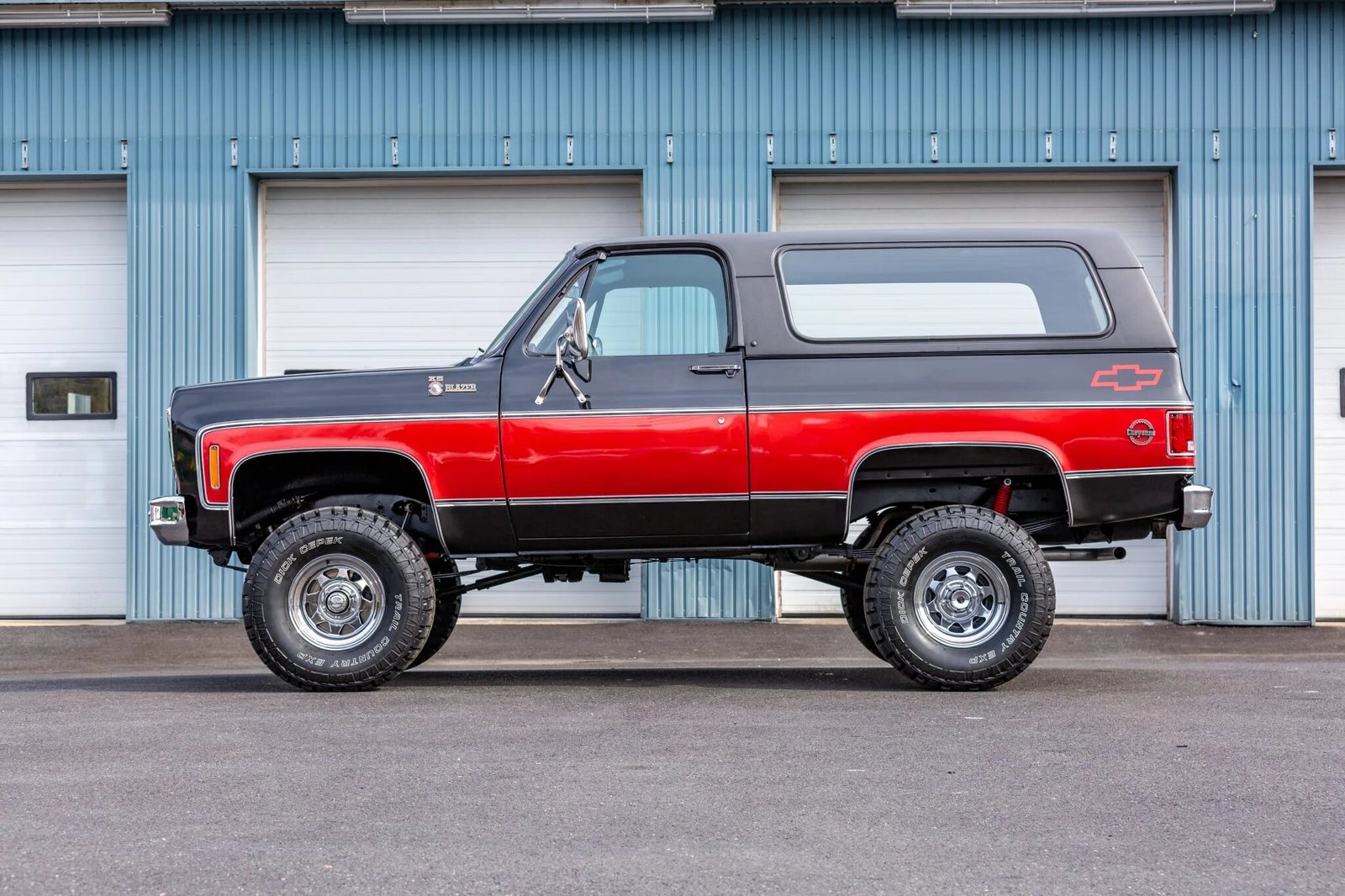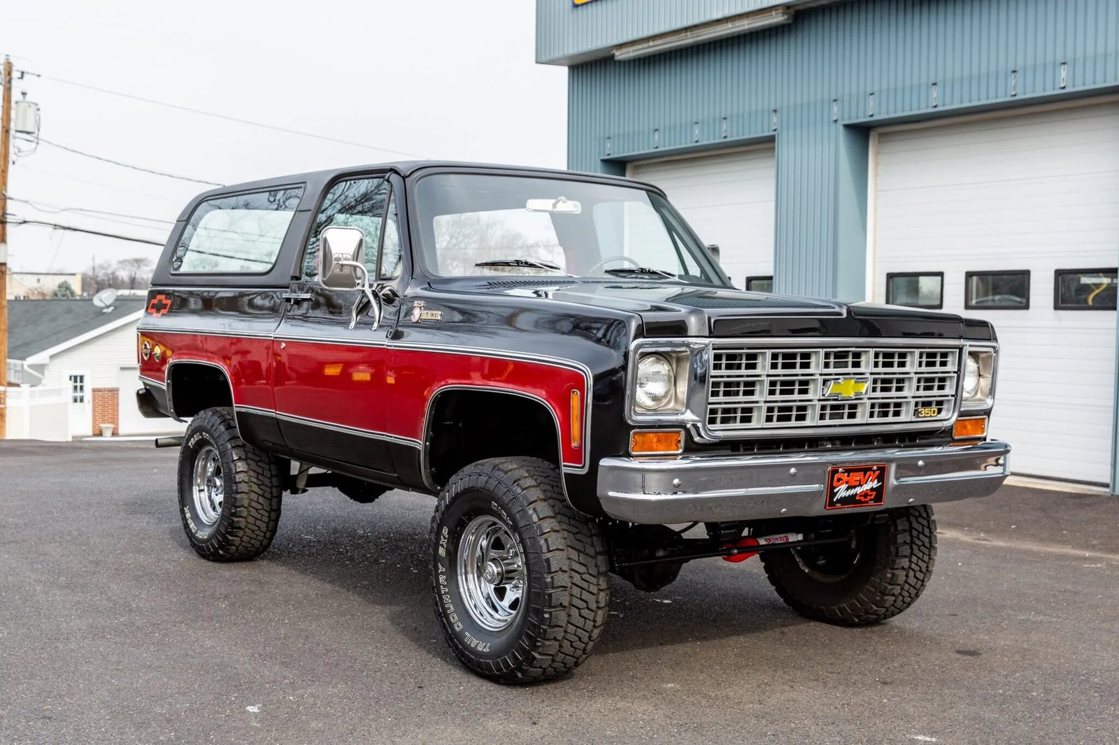 This 1975 Chevrolet K5 Blazer was used as a forestry service truck before it was refurbished in 2004. Power comes from a 350ci V8 mated to a four-speed manual transmission and a dual-range transfer case, and it has been refinished in two-tone metallic black and metallic red paint over a black interior. Additional equipment includes a black removable hardtop, Smittybilt seats, a 4″ lift kit, 15″ American Racing wheels, Mile Marker locking front hubs, an Edelbrock aluminum intake manifold and 600-cfm carburetor, a COMP Cams camshaft, and Hedman headers mated to a dual exhaust system.