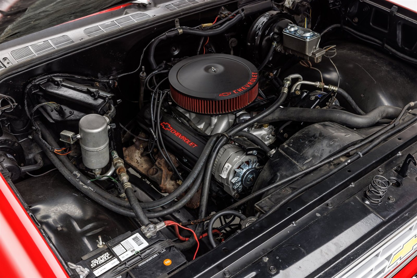 The body was repainted in its current red finish during the 2022 refurbishment, and additional work included replacing the grille, headlight bezels, taillight lenses, and bumpers at that time.