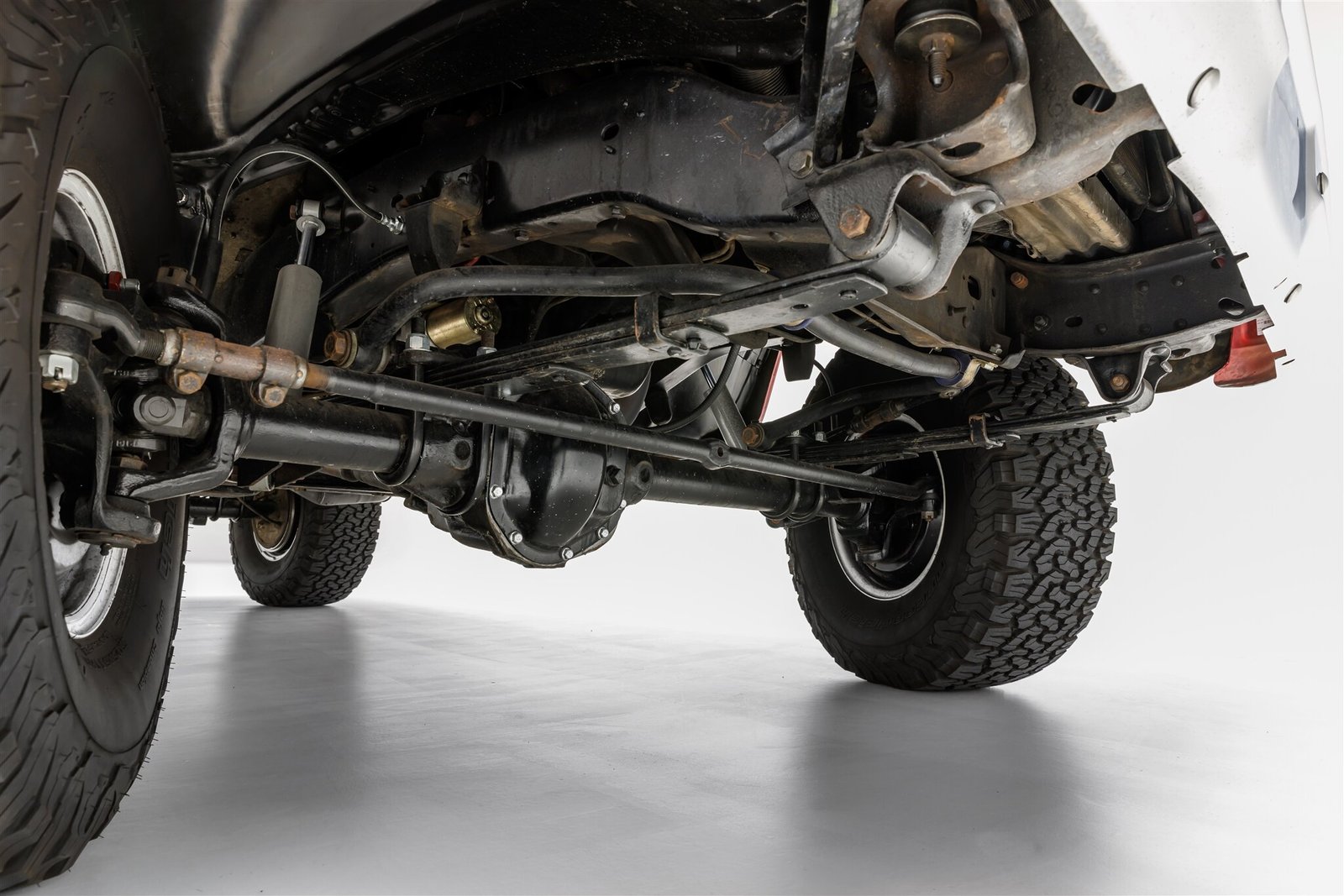 A Dana 44 front axle is paired with a 12-bolt rear housing, and both differentials were rebuilt in 2022.