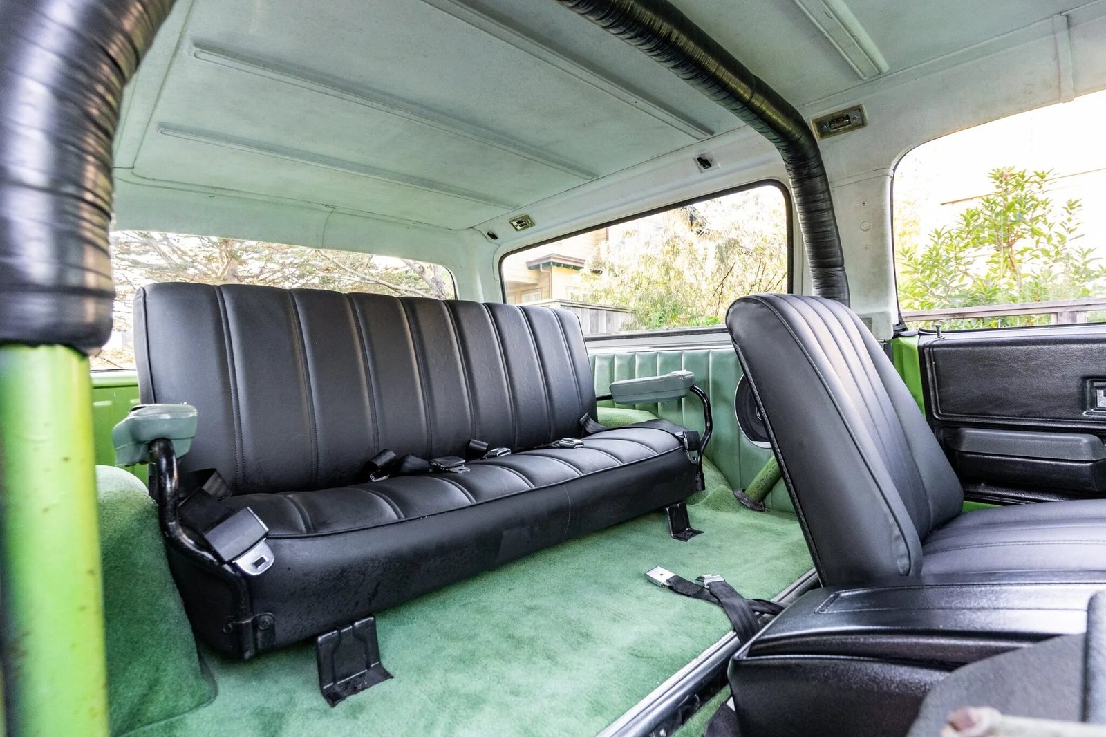 The cabin is said to have been refreshed with replacement vinyl upholstery on the front bucket seats and rear bench along with Dynamat sound insulation beneath the replacement carpeting.