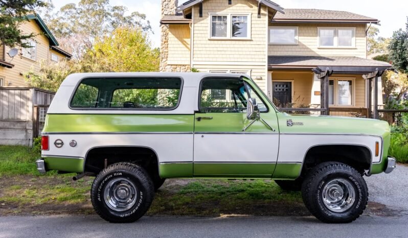 This 1975 Chevrolet K5 Blazer is finished in two-tone green and white over black vinyl and powered by a 350ci V8 paired with a replacement four-speed automatic transmission and a dual-range transfer case.