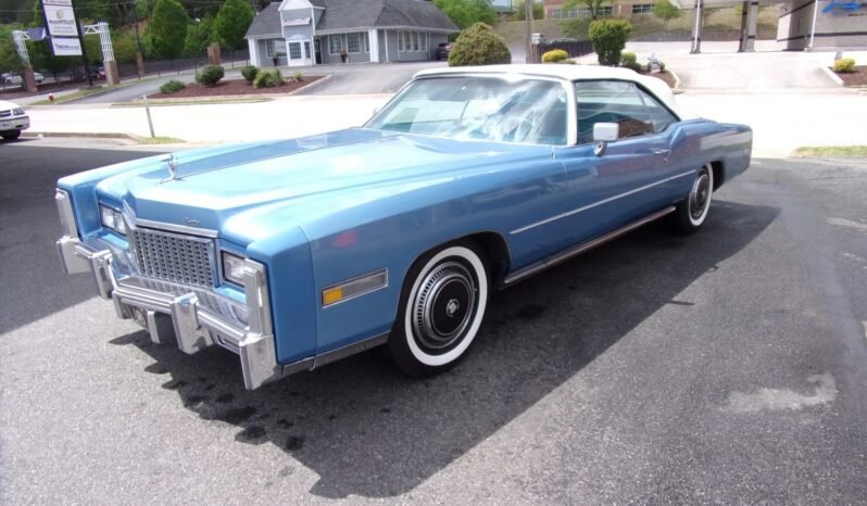 This 1976 Cadillac Eldorado convertible is finished in Innsbruck Blue Metallic over light blue upholstery and powered by a 500ci V8 mated to a three-speed automatic transaxle.