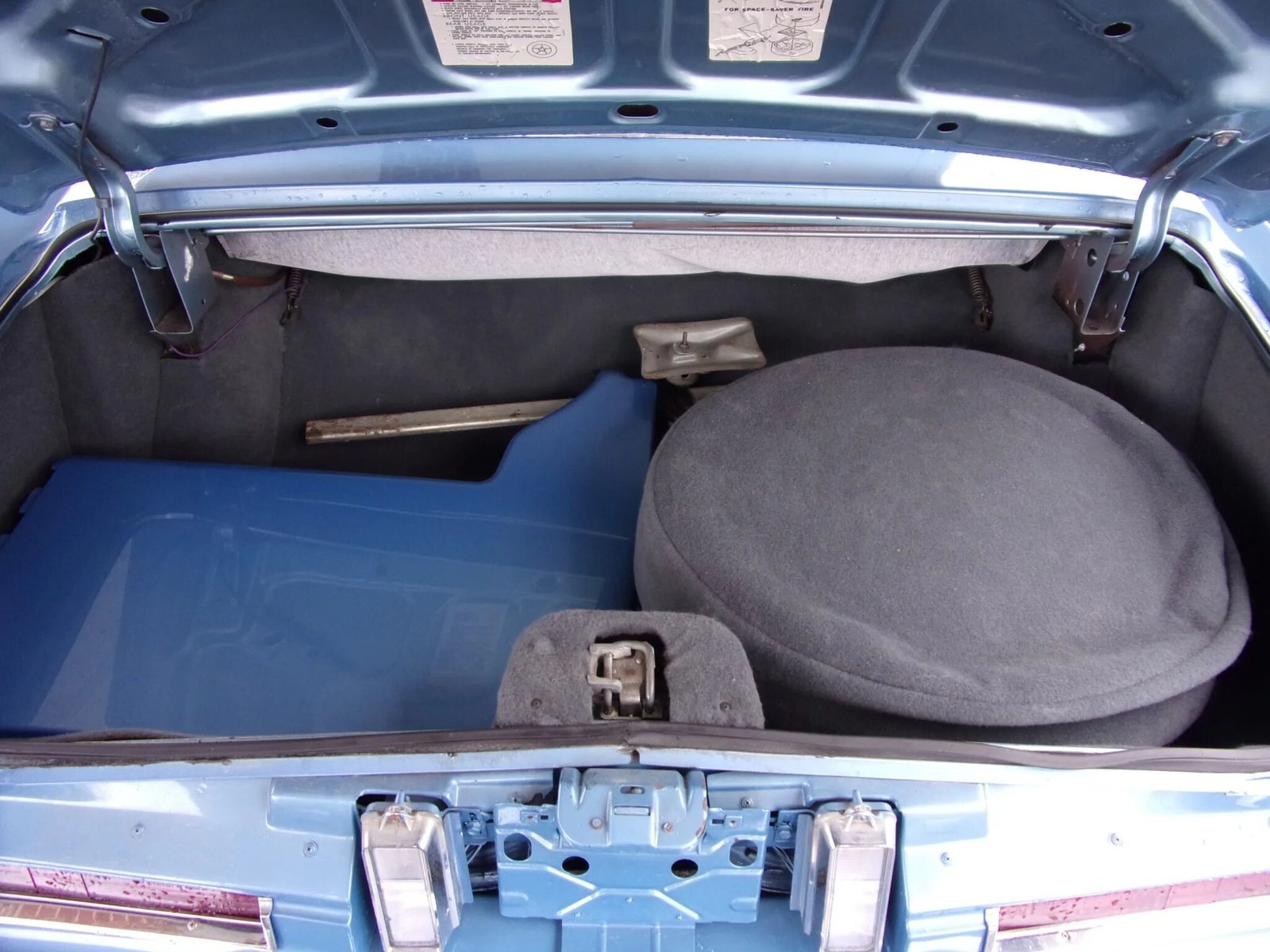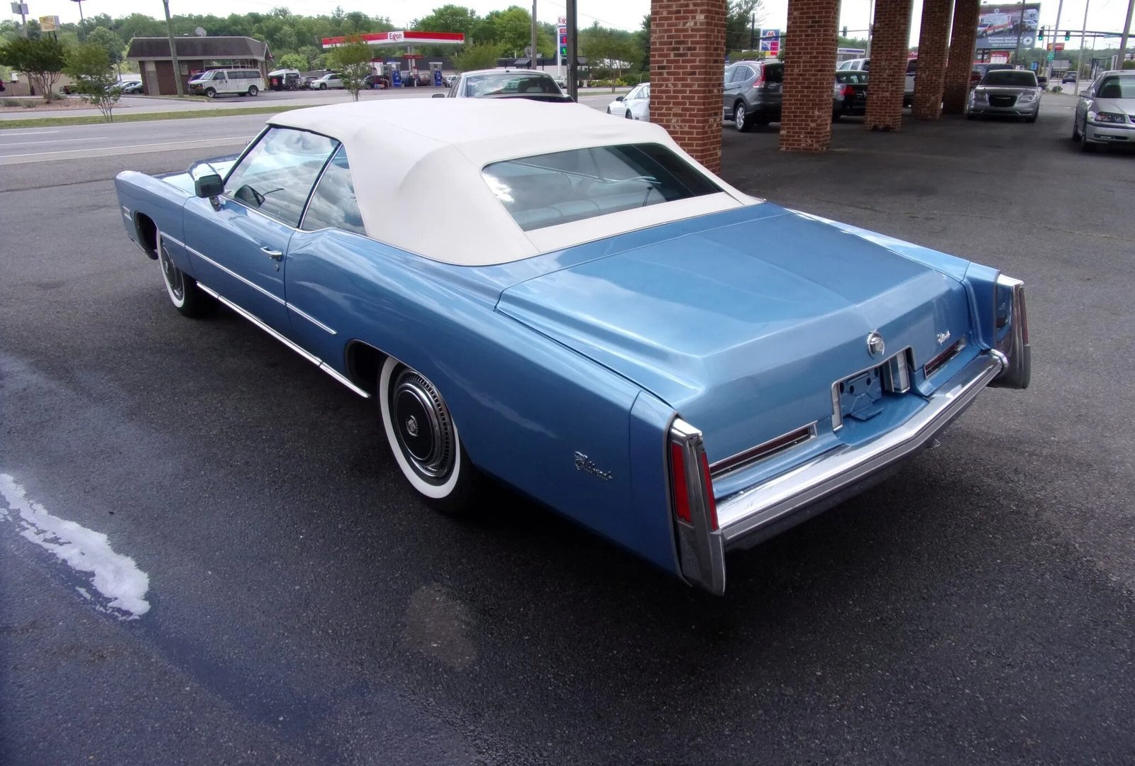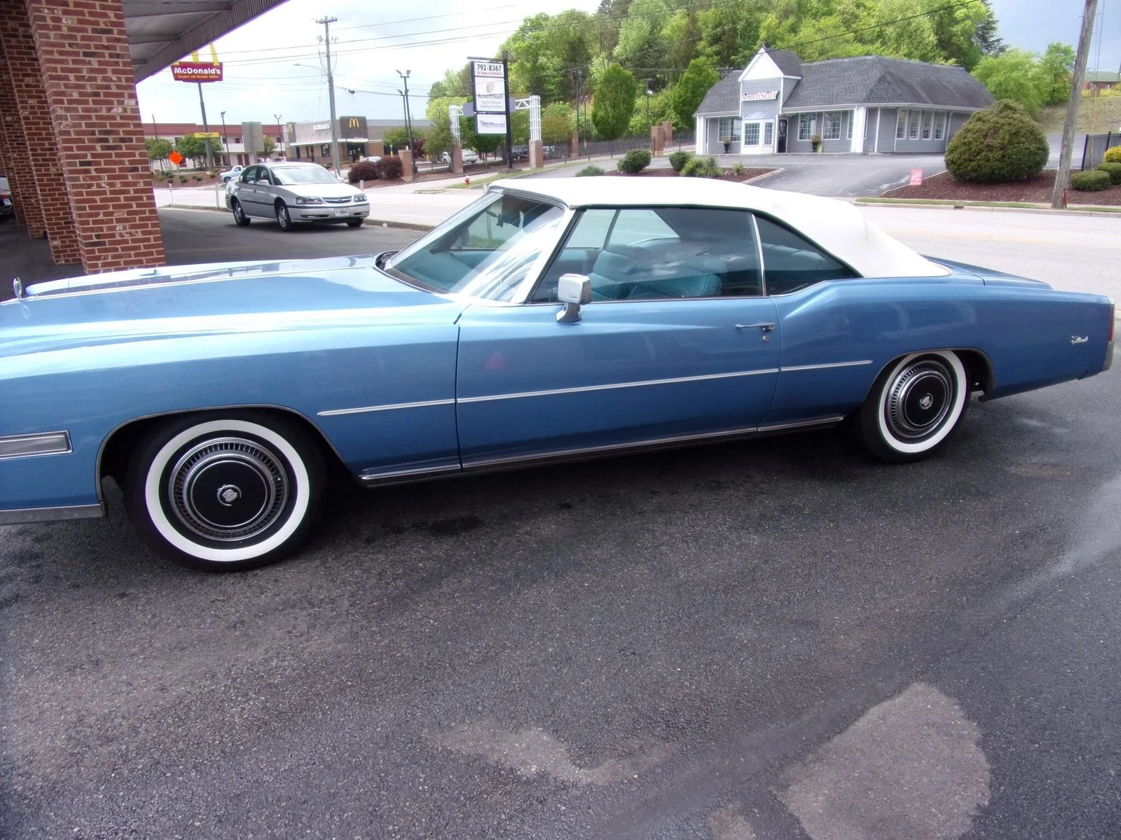 The 15″ steel wheels wear black and chrome Cadillac-logo hubcaps and are fitted with 235/75 American Classic whitewall tires have been installed in preparation for sale.