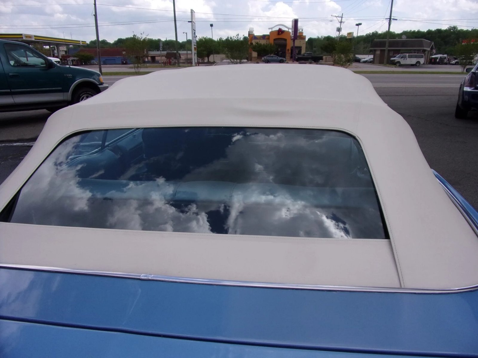 The rear bumper extensions and power-operated white soft top were replaced at that time, and chrome trim adorns the bumpers, light surrounds, grille, and windshield surround.