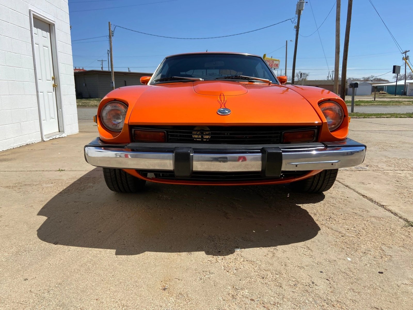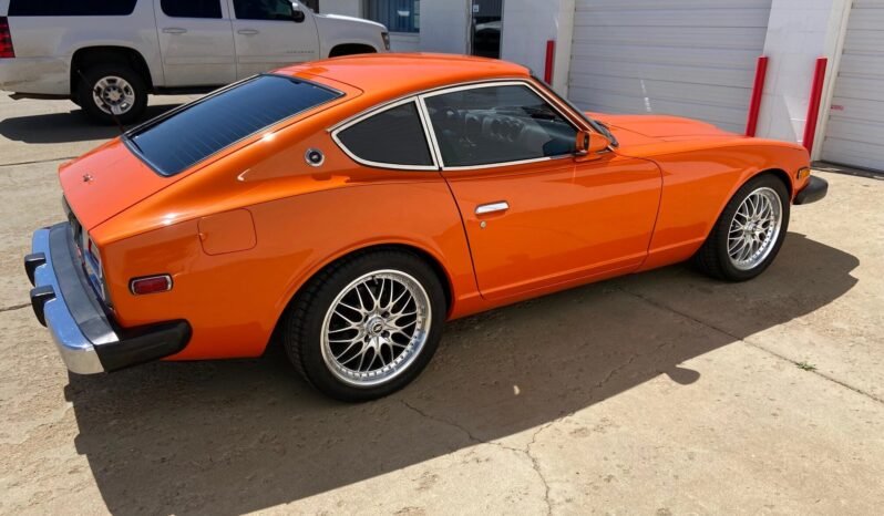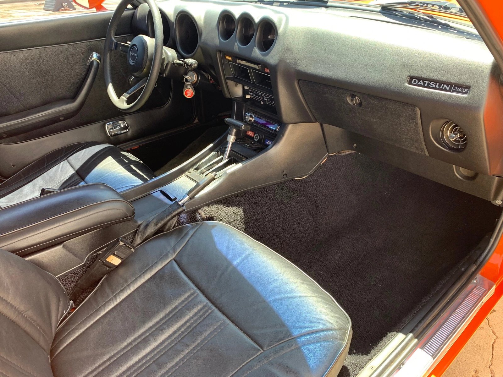 This 1976 Datsun 280Z is powered by a 5.7-liter L98 V8 mated to a four-speed 700R4 automatic transmission and is finished in orange with custom pinstripes over black upholstery.