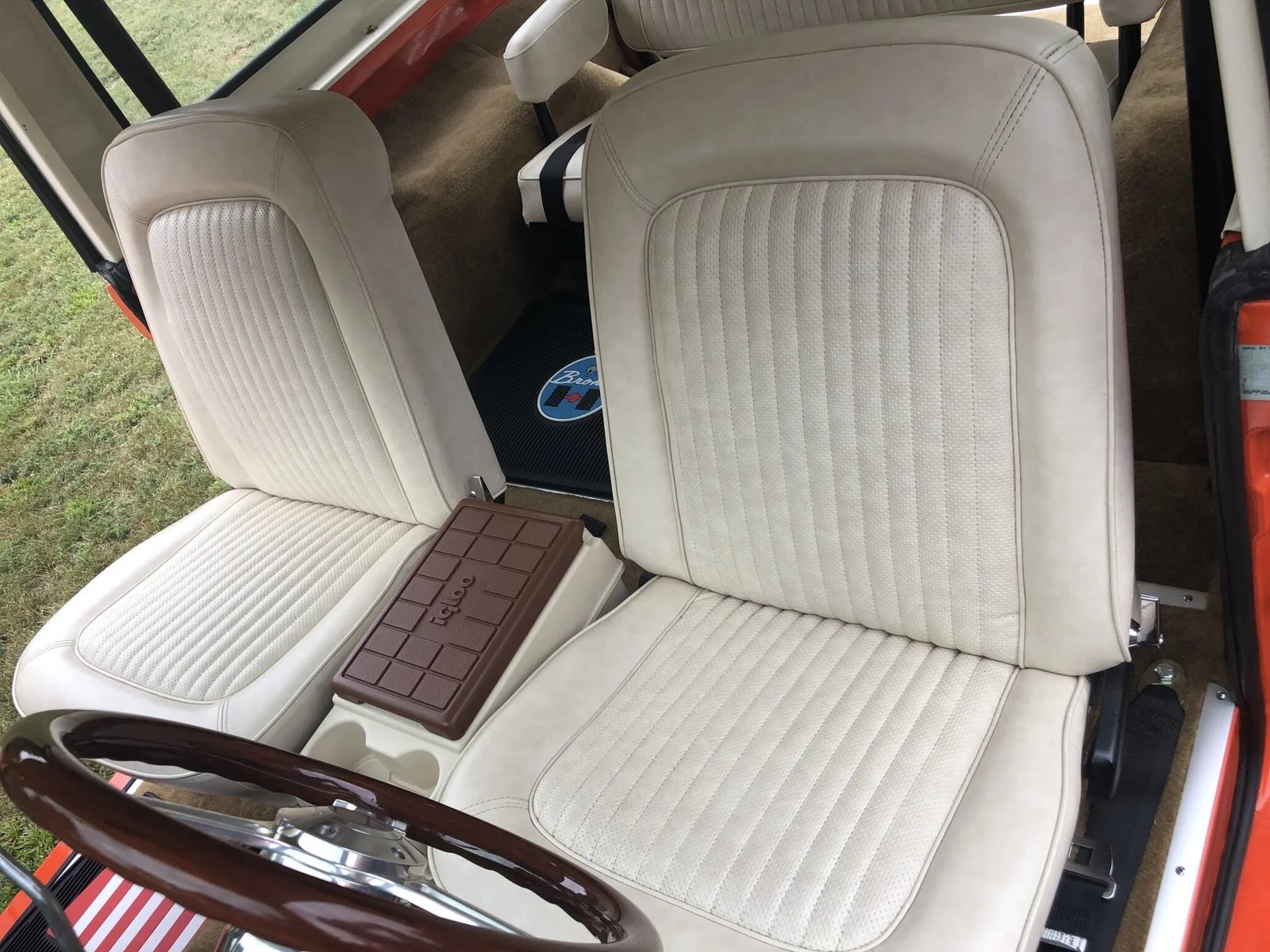 Additional equipment includes Bronco-branded floor mats, a black roll bar, and an iGloo cooler that sits between the front seats.