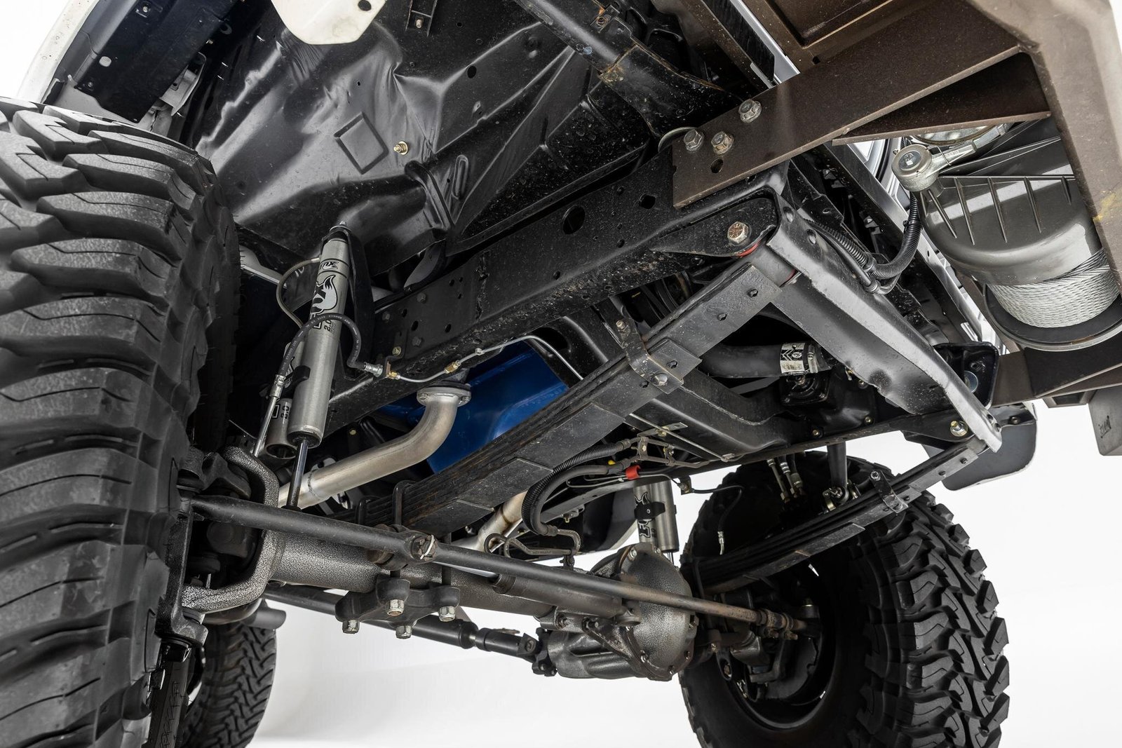 The frame and Dana 44 axles have been powder coated black.