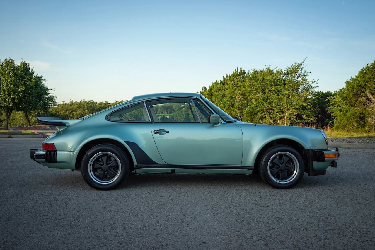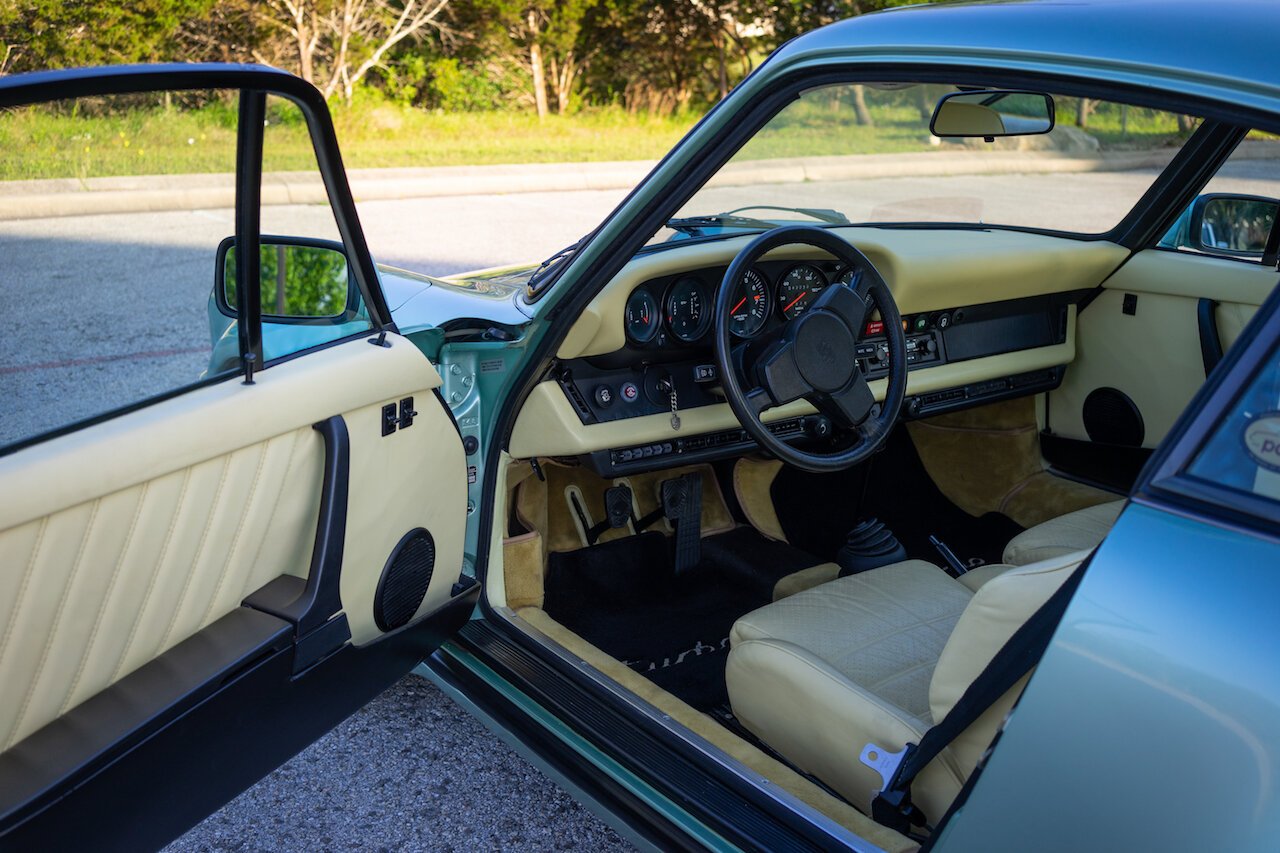 This 1976 Porsche 930 Turbo Carrera was ordered new in Ice Green Metallic over color-to-sample full leather and is equipped with its matching-numbers 3.0L turbo six and original 4-speed manual gearbox.
