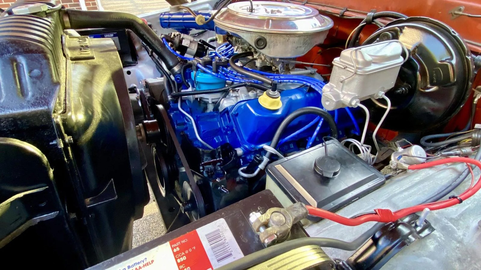 The 351ci V8 have been overhauled and features a two-barrel carburetor, a blue-finished block and valve covers, and dual batteries.