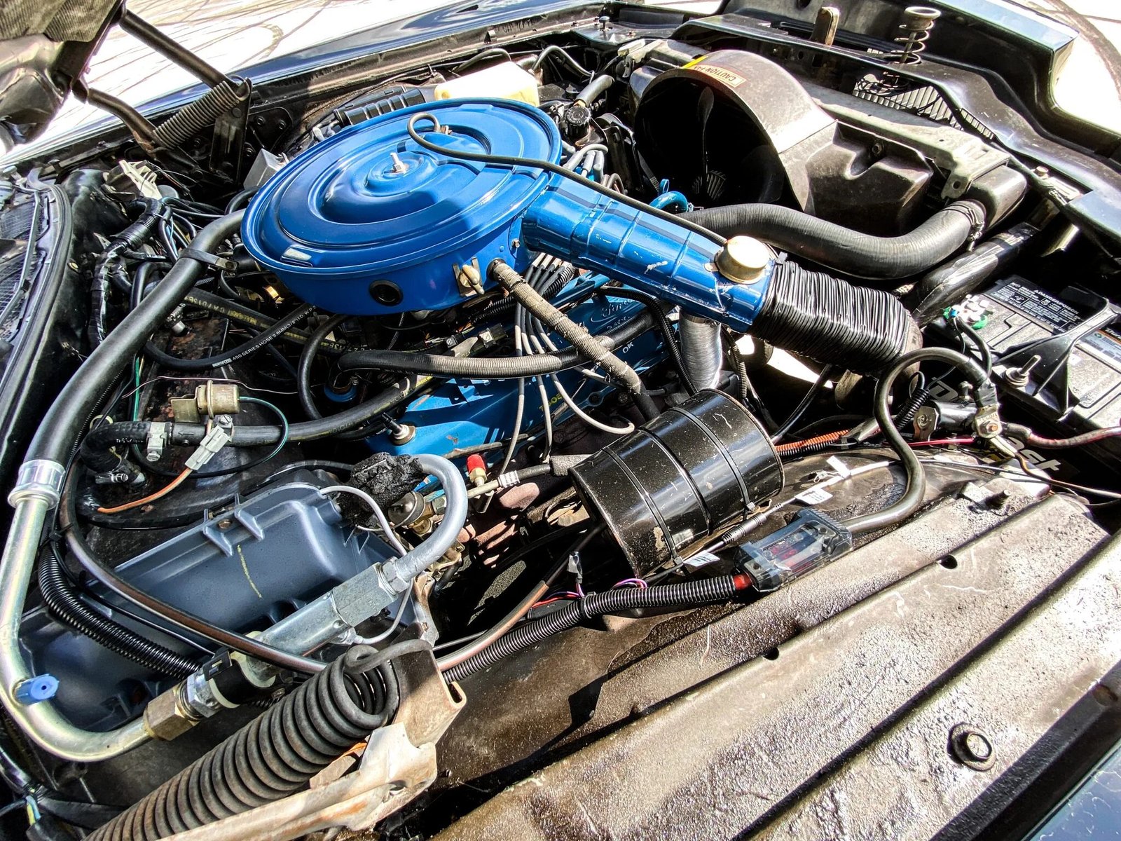 The 460ci V8 has been fitted with a FiTech fuel injection system and sends power to the rear wheels through a three-speed automatic transmission.