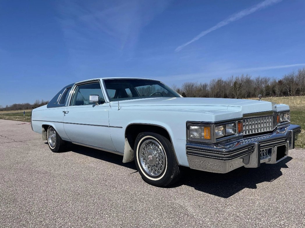 This 1978 Cadillac Coupe DeVille is finished blue over light blue leather and is powered by a 425ci V8 paired with a three-speed automatic transmission.