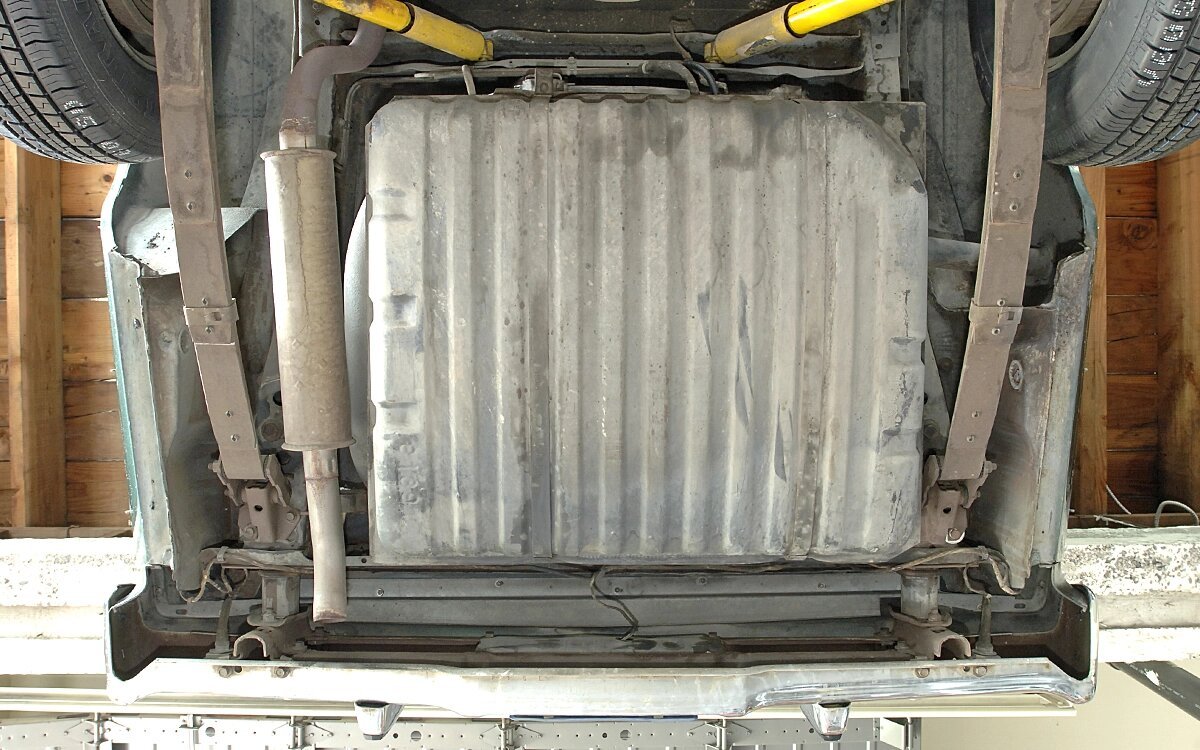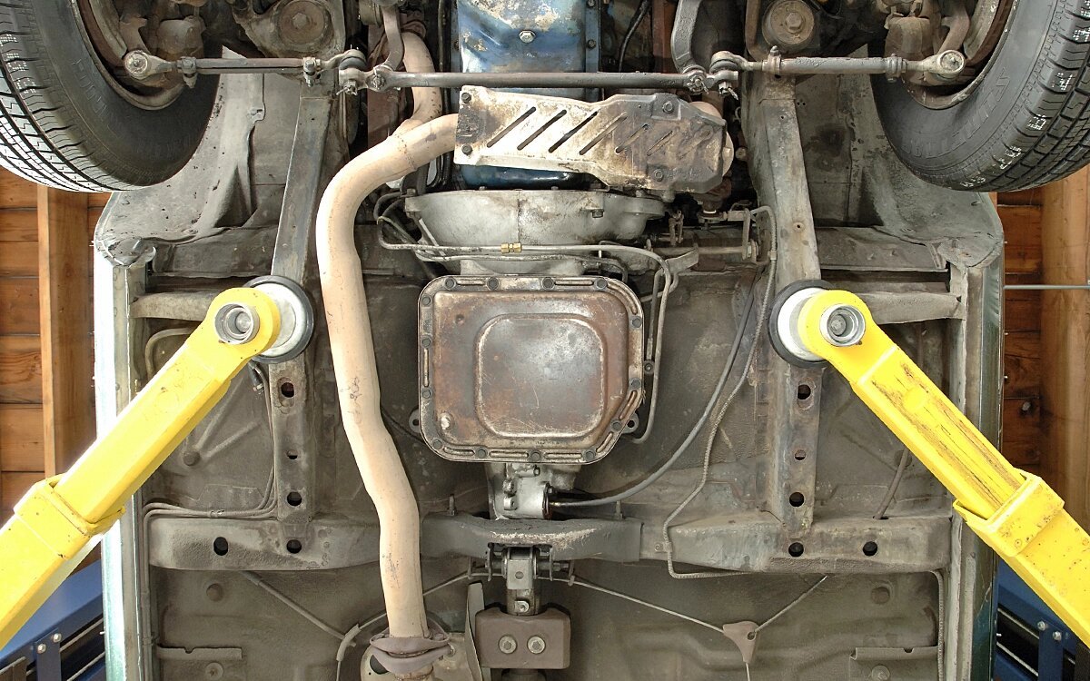 Cosmoline is still visible in the engine bay, and a new catalytic converter was installed.