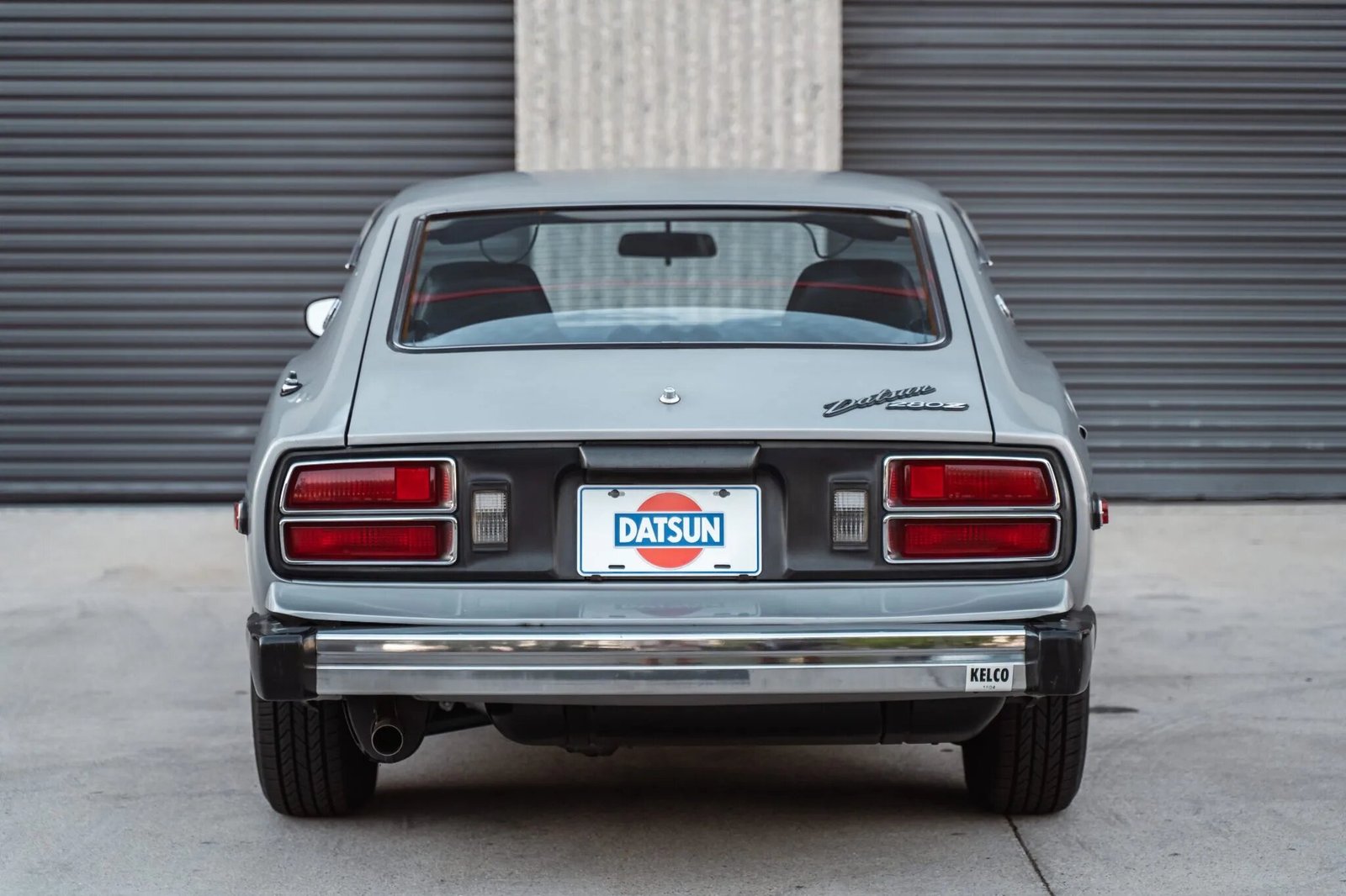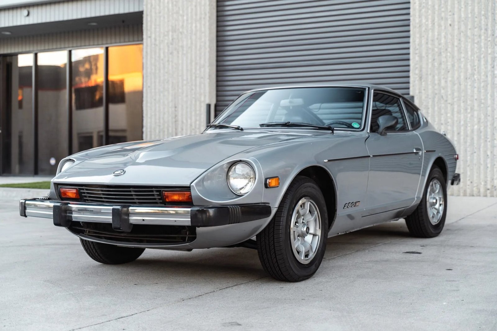 The car is finished in silver and is equipped with chrome-accented impact bumpers, a driver-side mirror, hood vents, C-pillar “Z” emblems, belt-line trim, and a single polished exhaust outlet.