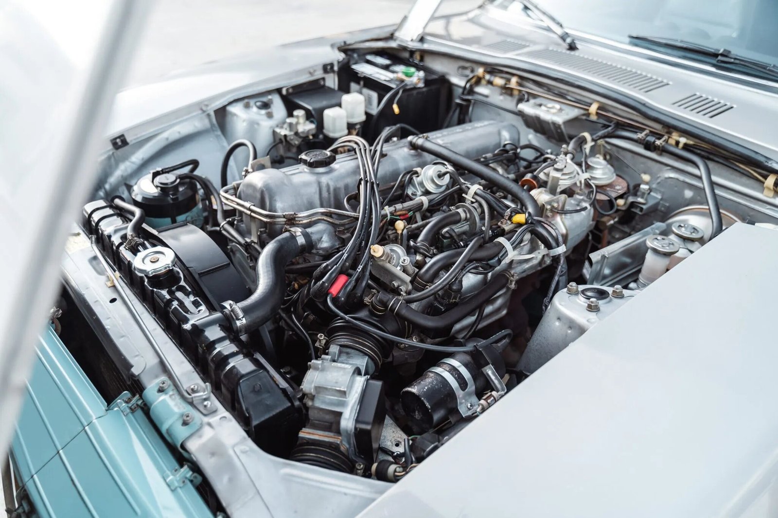 The 2.8-liter inline-six features a single overhead camshaft and was factory rated at 170 horsepower and 163 lb-ft of torque. The drive and accessory belts were changed and the fuel filter and sending unit were replaced in preparation for the sale. Power is sent to the rear wheels through a four-speed manual transmission.