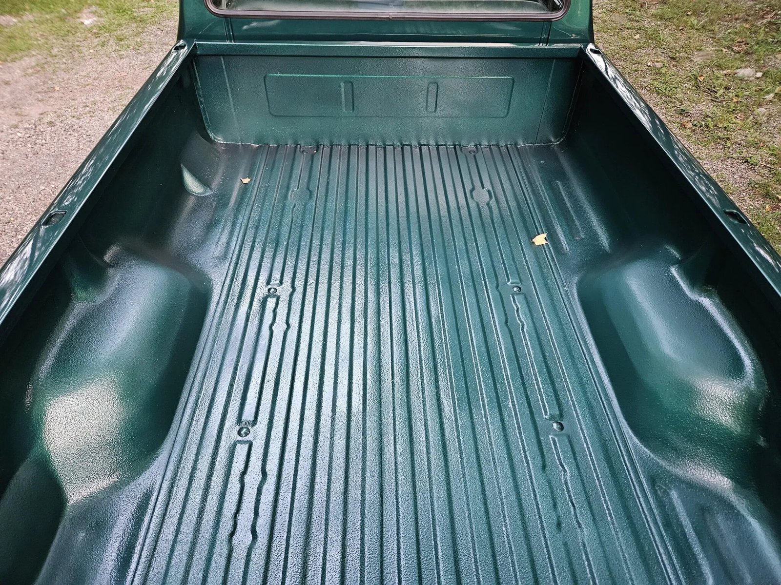 The regular cabin features seating surfaces upholstered in Jade Green cloth. Interior amenities include an aftermarket AM/FM stereo, a tilting steering wheel, and air conditioning.